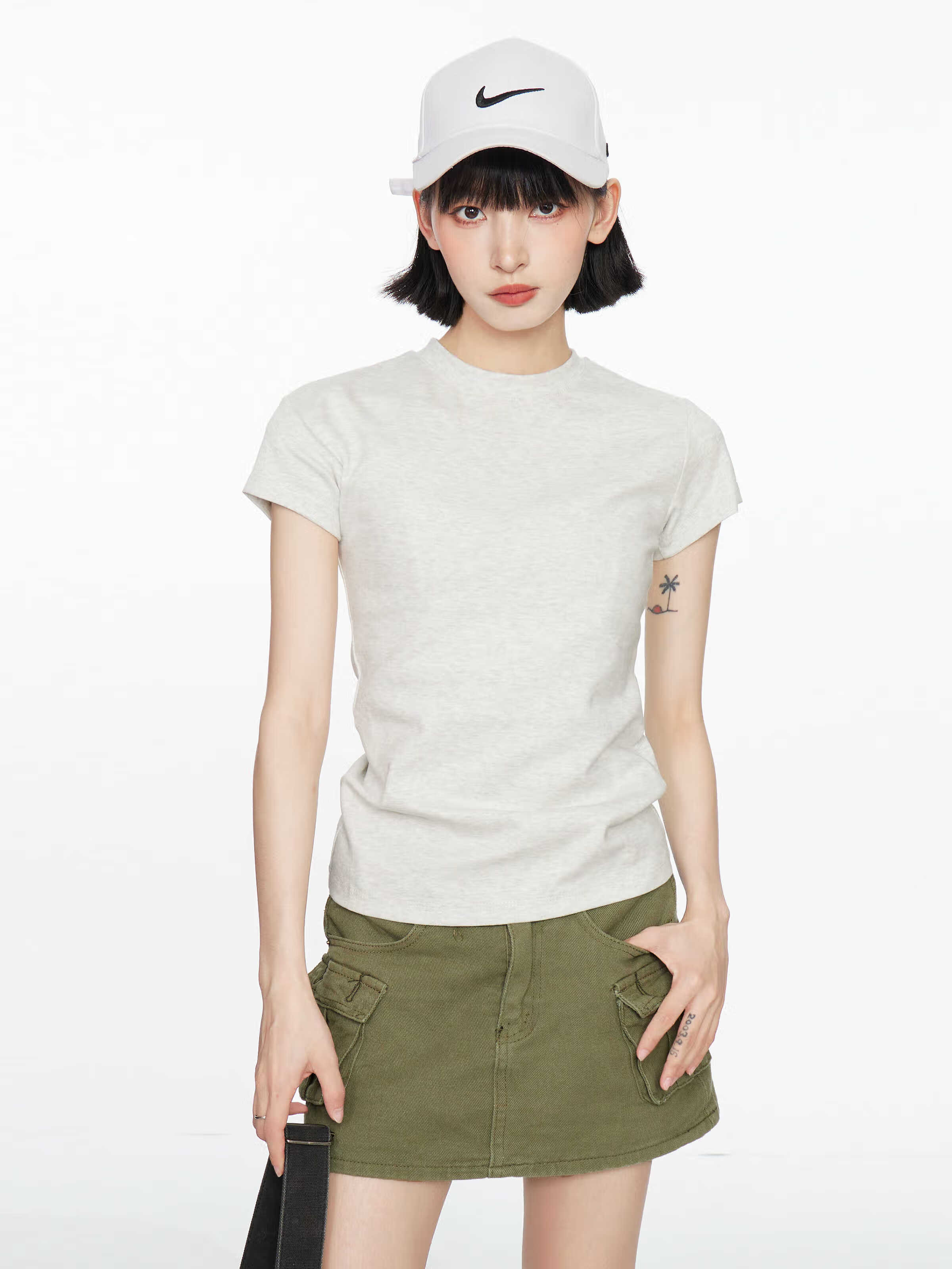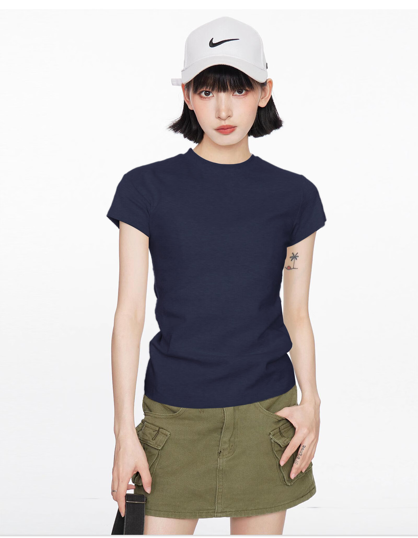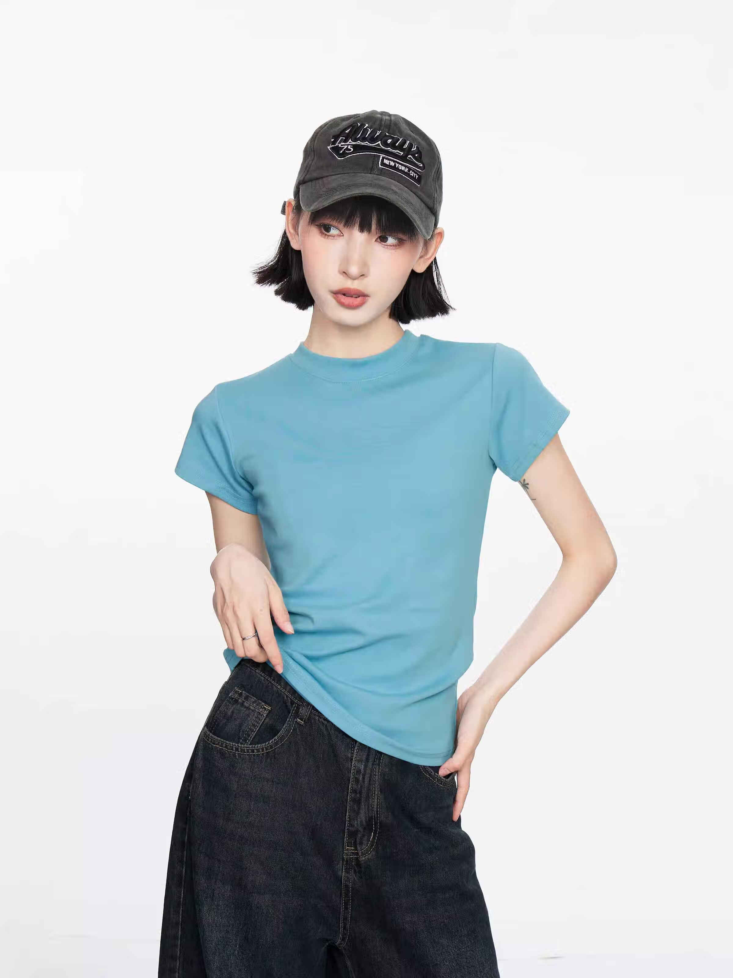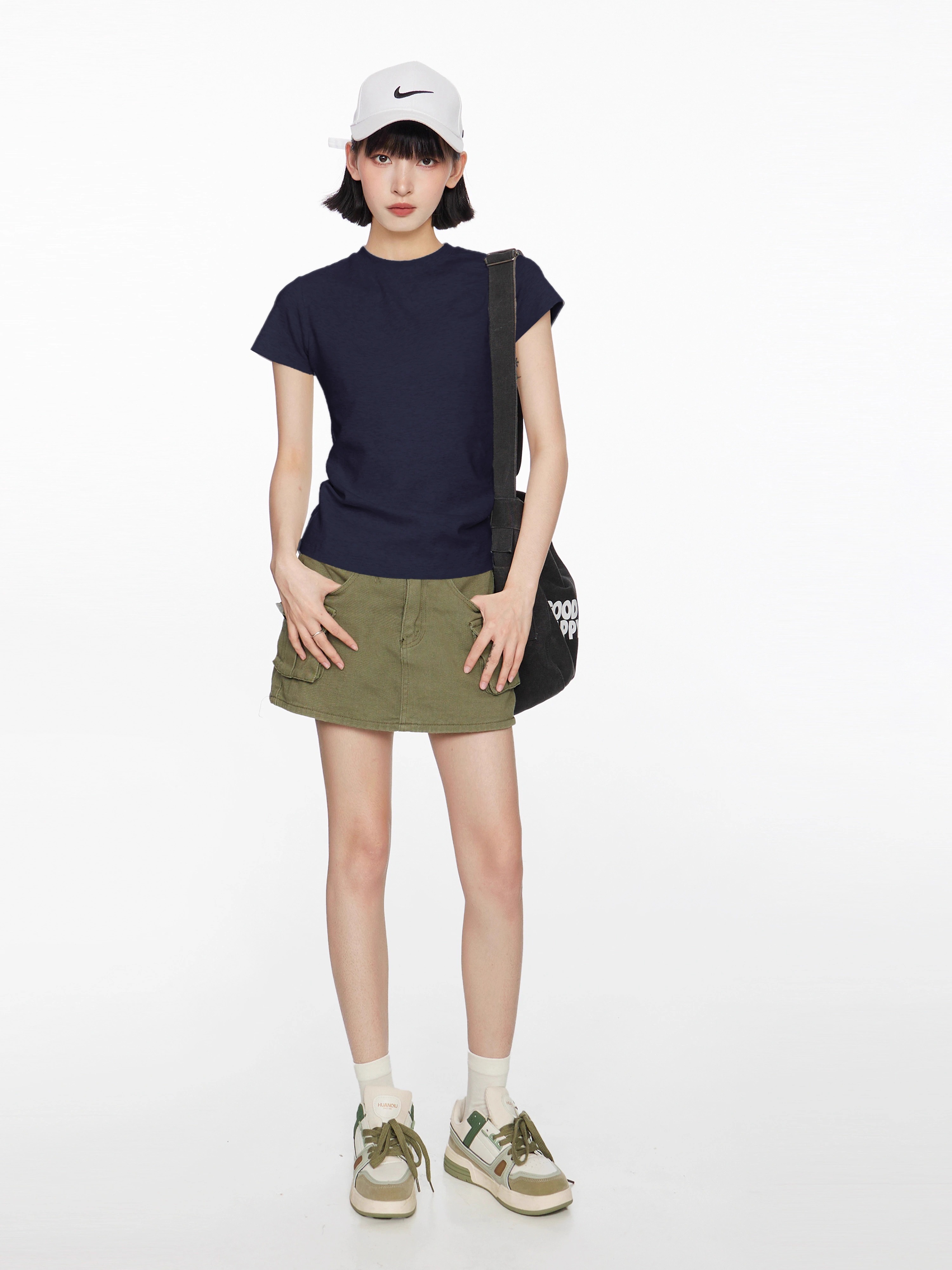 【地素DZZIT同款】纯棉正肩短袖t恤女修身显瘦纯色内搭GXXX11 黑色(高质量款) XL