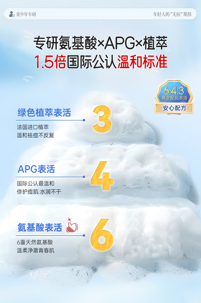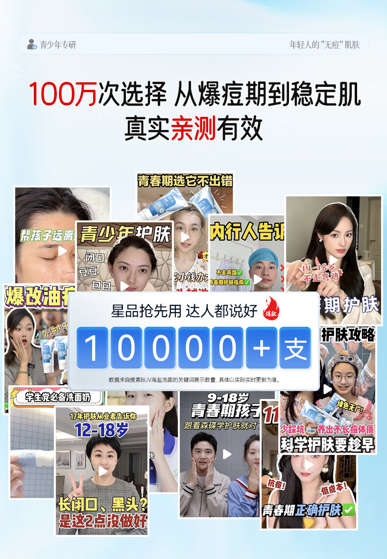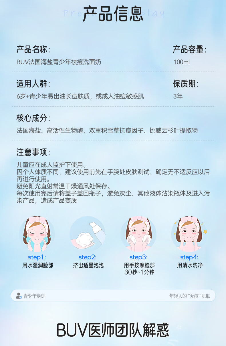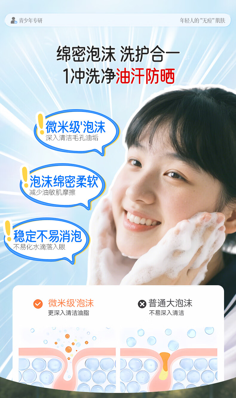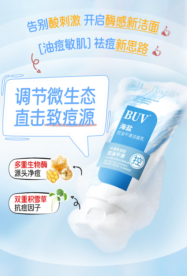 BUV青少年洗面奶祛痘控油学生专用氨基酸保湿去黑头痘印缩毛孔金榜1