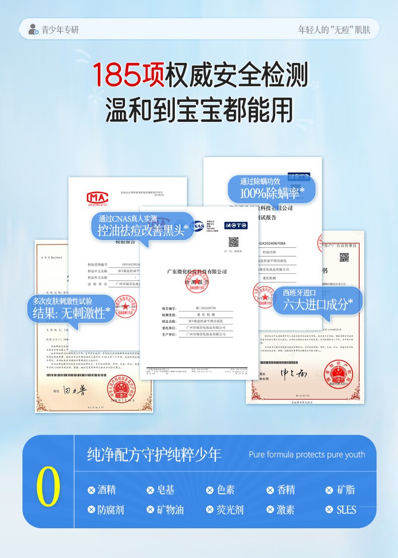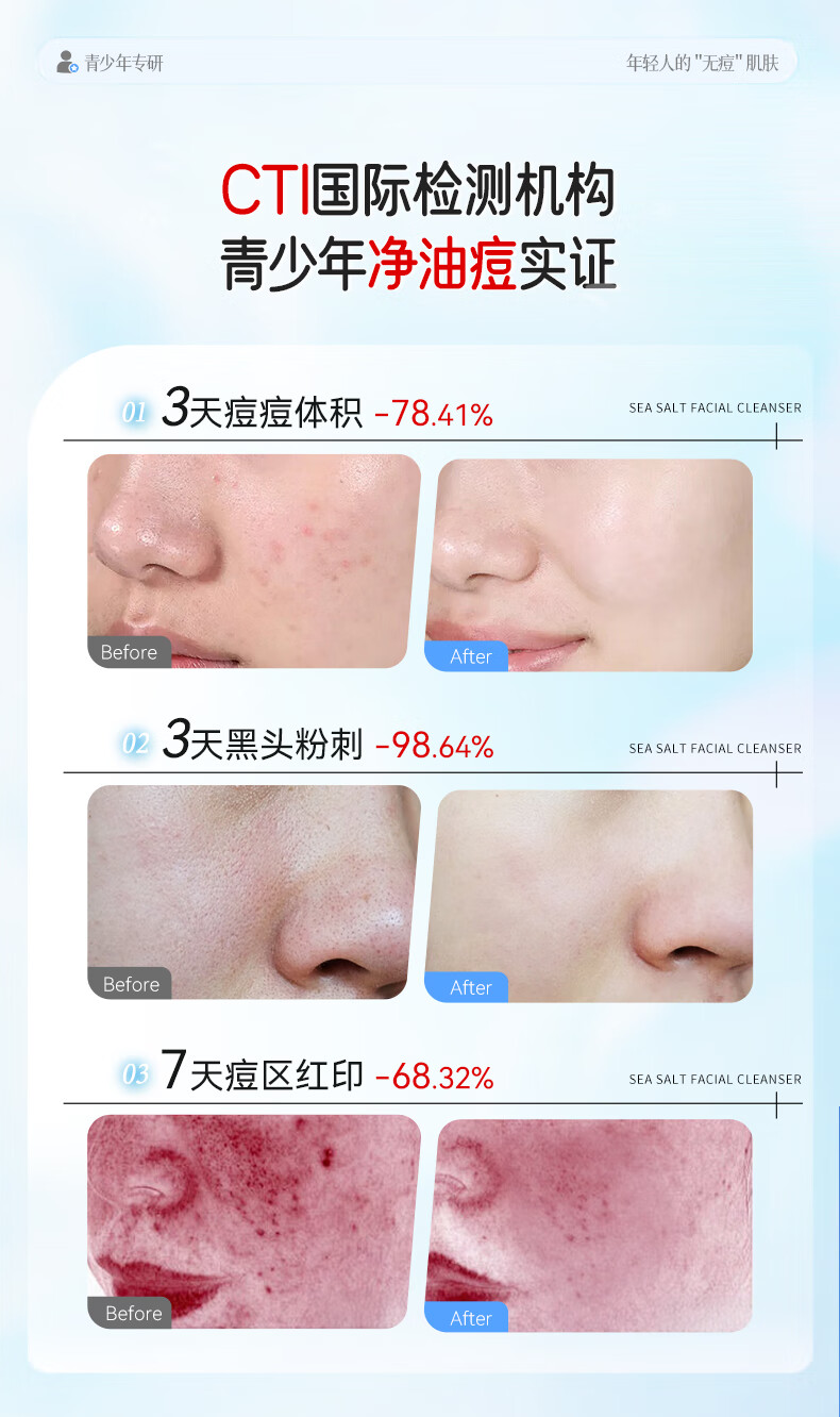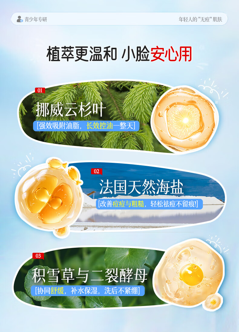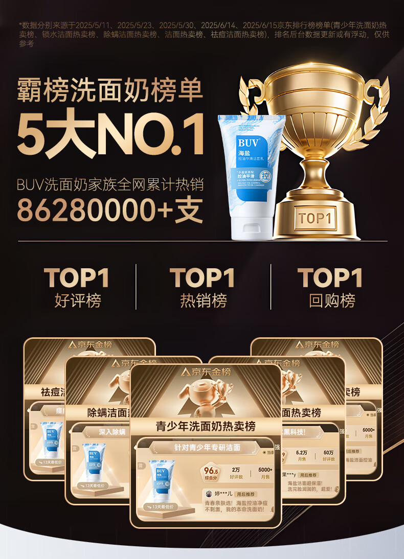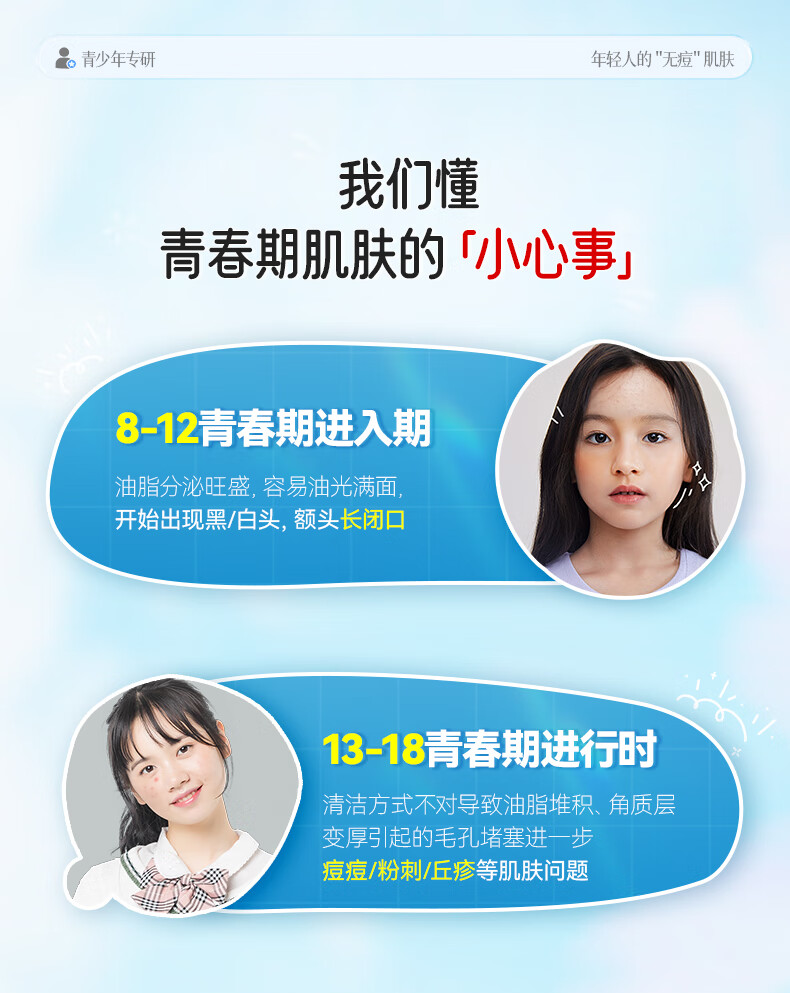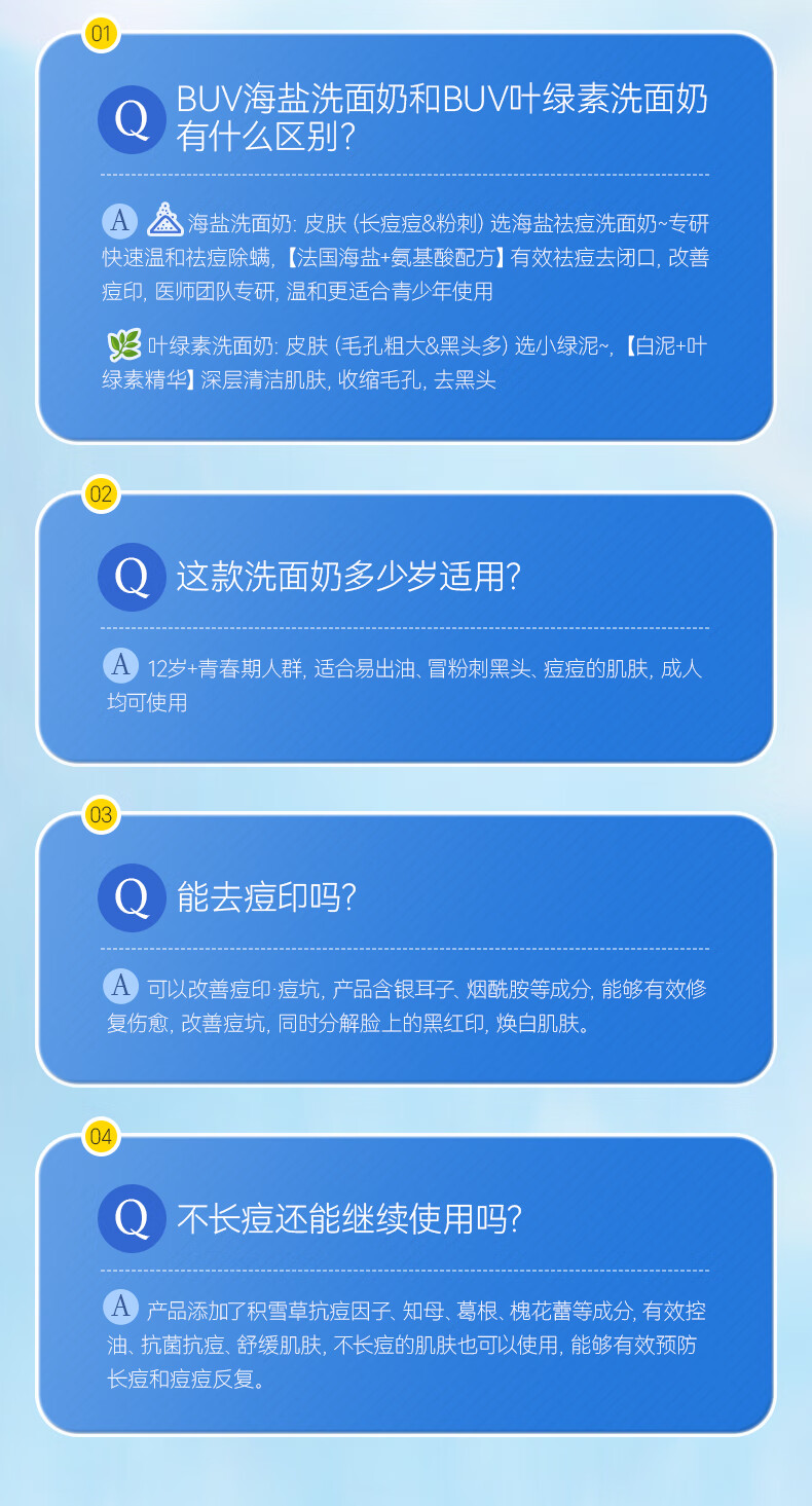 BUV青少年洗面奶祛痘控油学生专用氨基酸保湿去黑头痘印缩毛孔金榜1