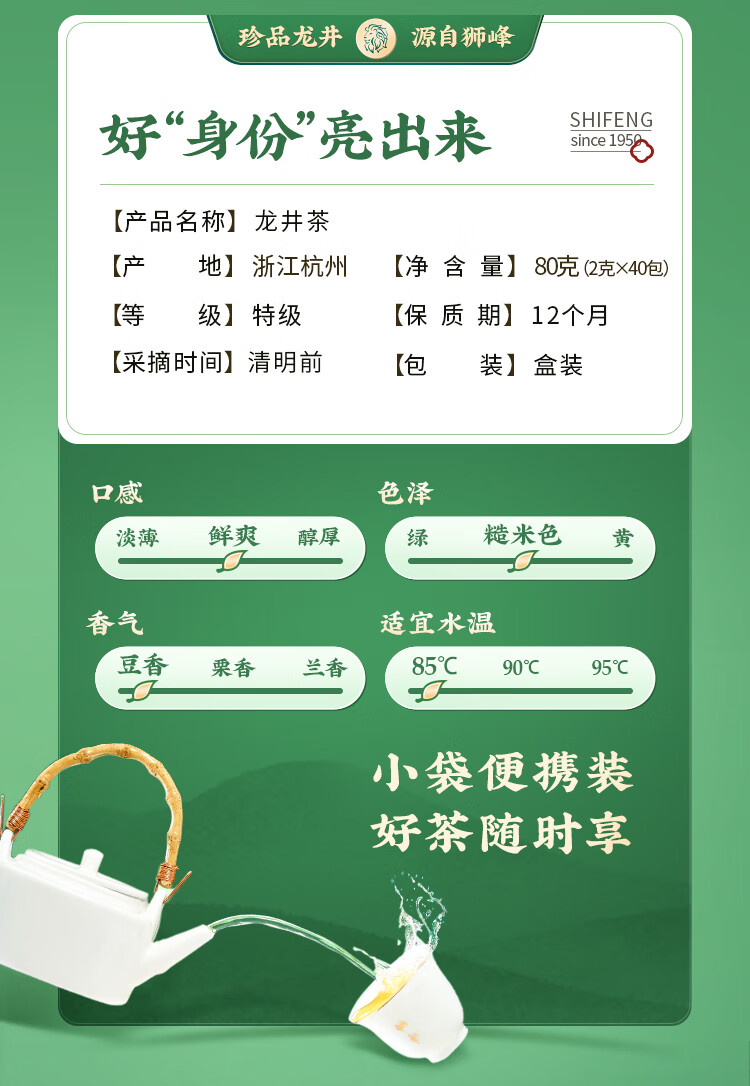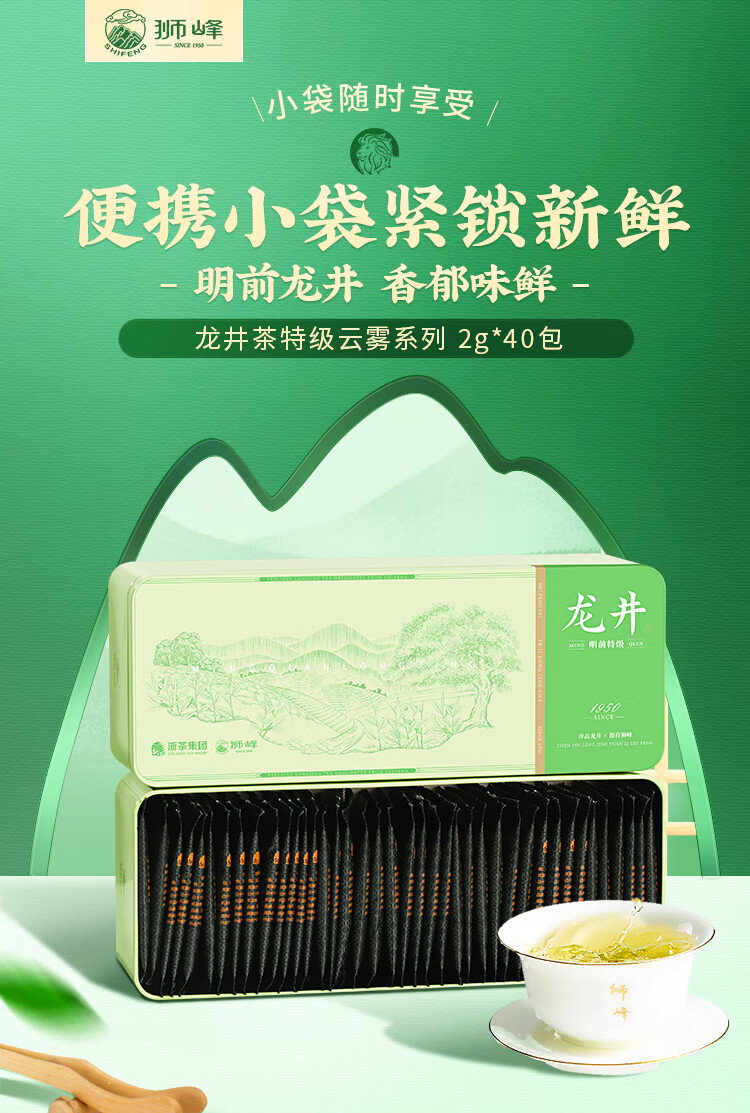 狮峰牌2026年新茶预售绿茶明前龙井茶叶特级80g小包袋泡装送礼送长辈