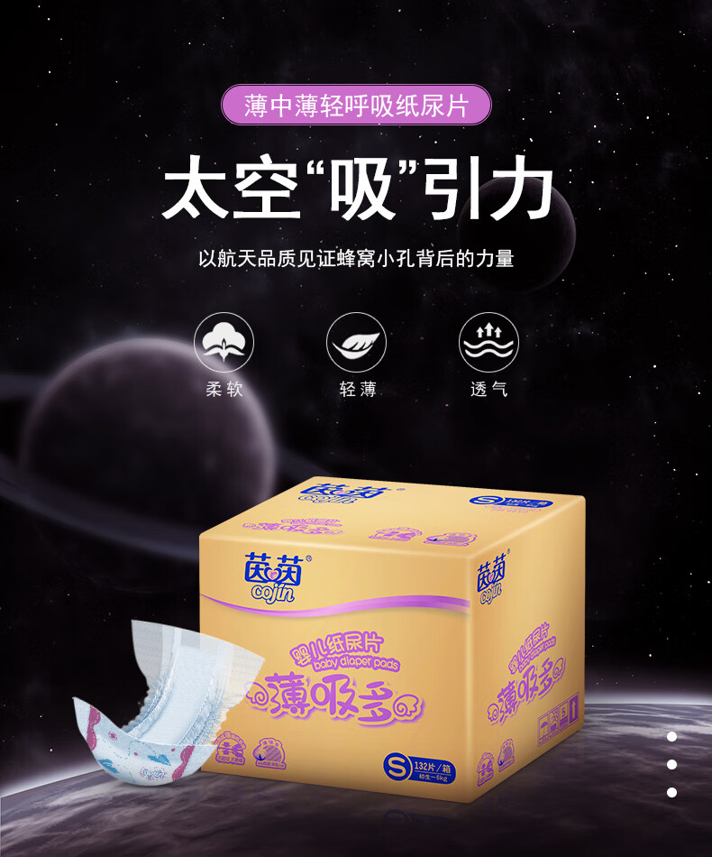 茵茵(cojin)薄吸多纸尿片S132(3-6kg新生儿超薄透气冬季小码无粘贴宝宝纸尿裤