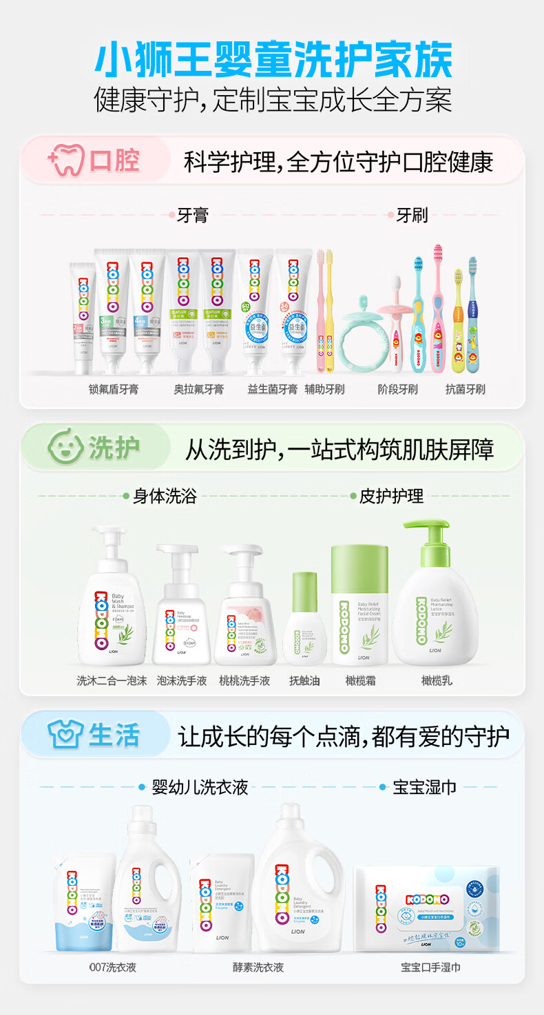 狮王(Lion)小狮王锁氟盾儿童牙膏6个月-2岁婴幼儿宝宝含氟防蛀牙膏无香型30g