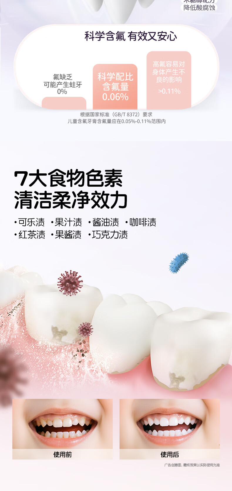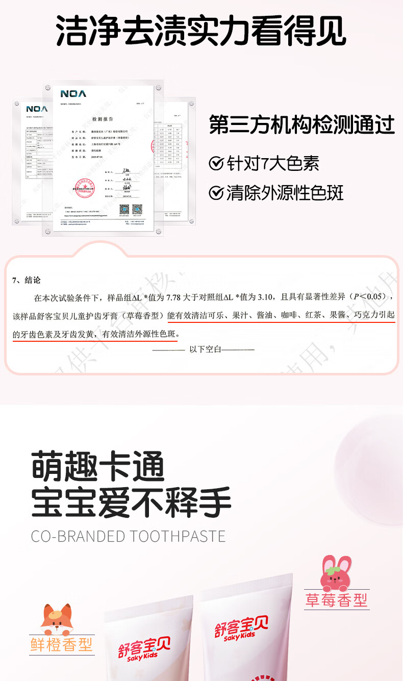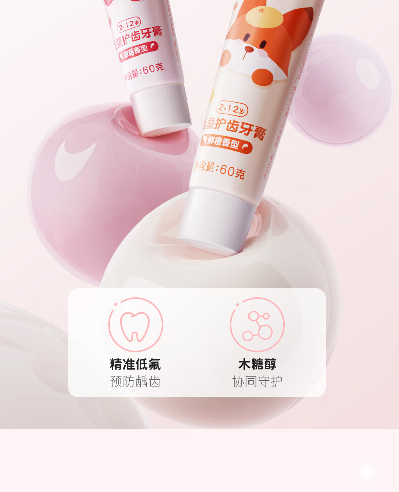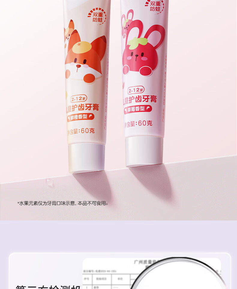 舒客宝贝(sakykids)儿童牙膏套装2-12岁含氟防蛀木糖醇护齿草莓味+鲜橙味60g*2支装