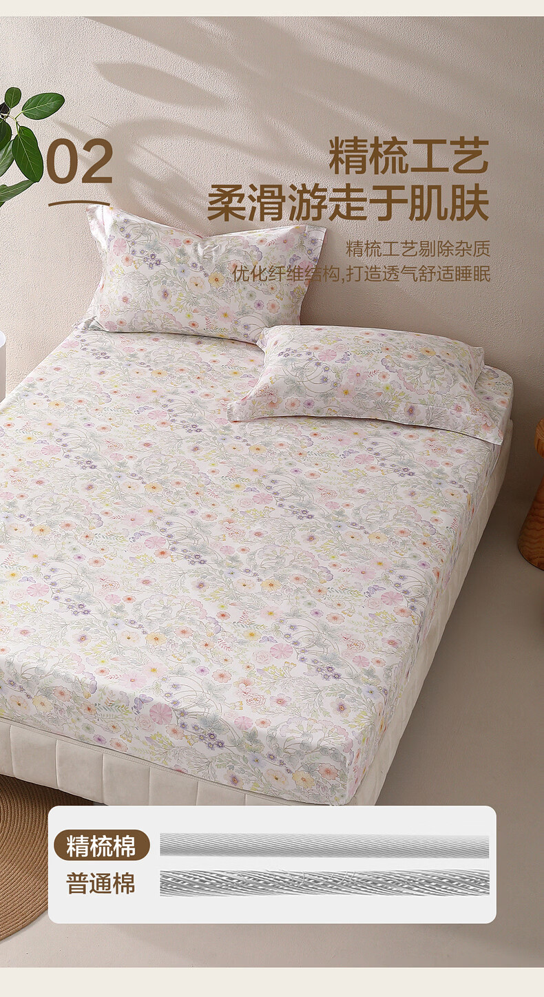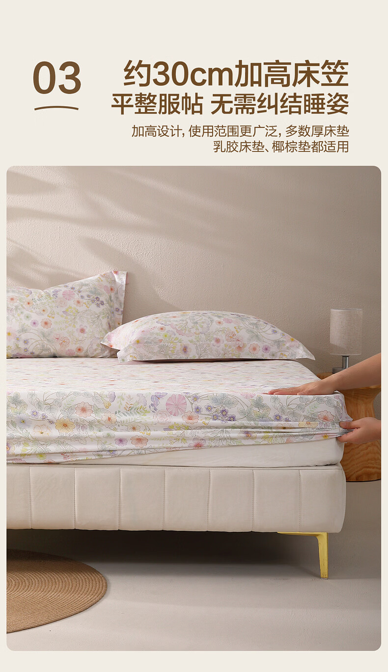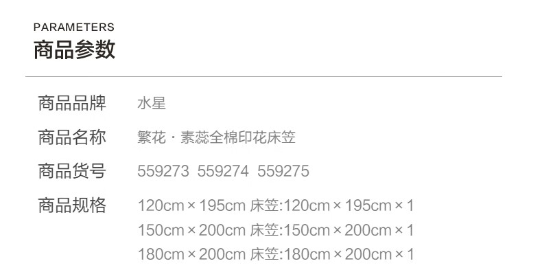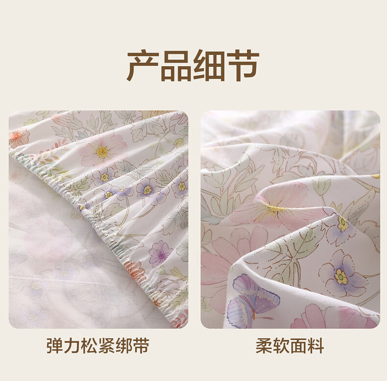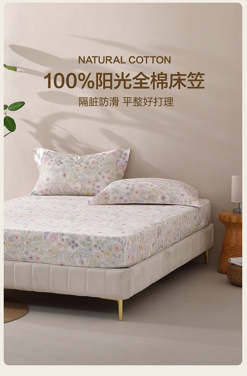 水星家纺繁花·素蕊全棉印花床笠 繁花·素蕊全棉印花床笠 120cm*195cm