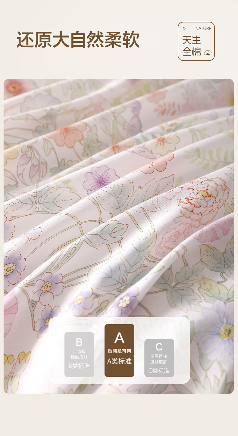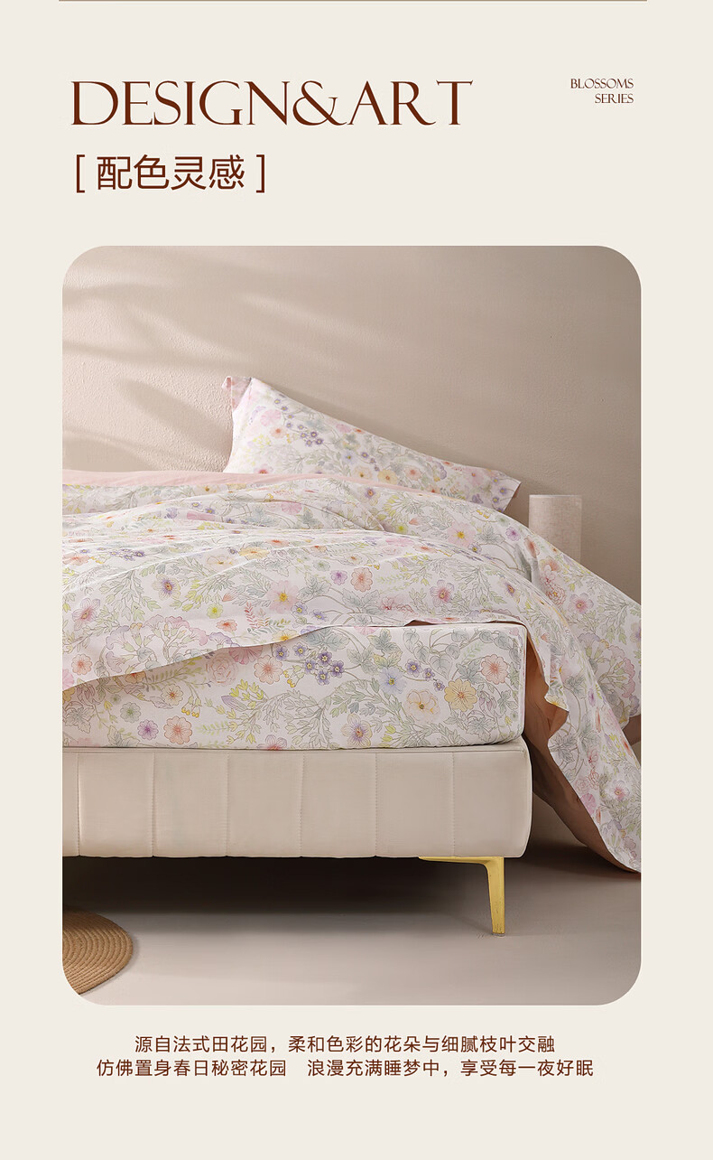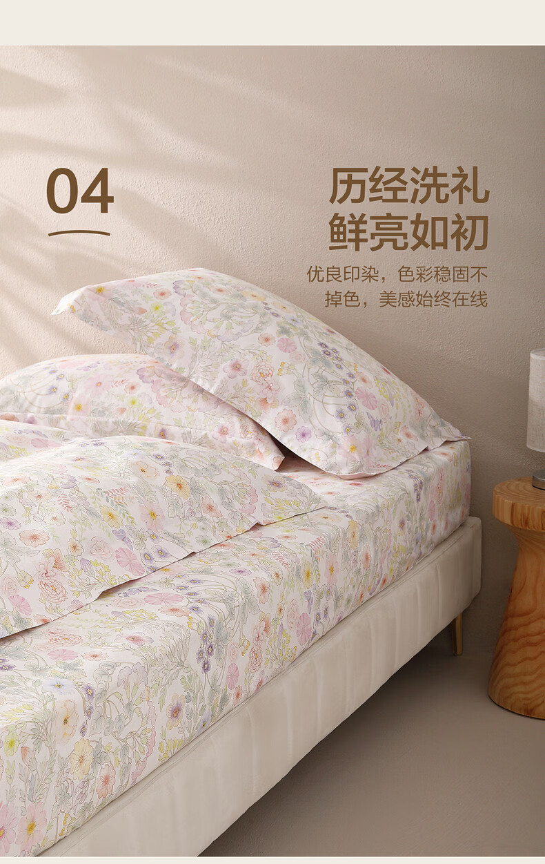 水星家纺繁花·素蕊全棉印花床笠 繁花·素蕊全棉印花床笠 120cm*195cm