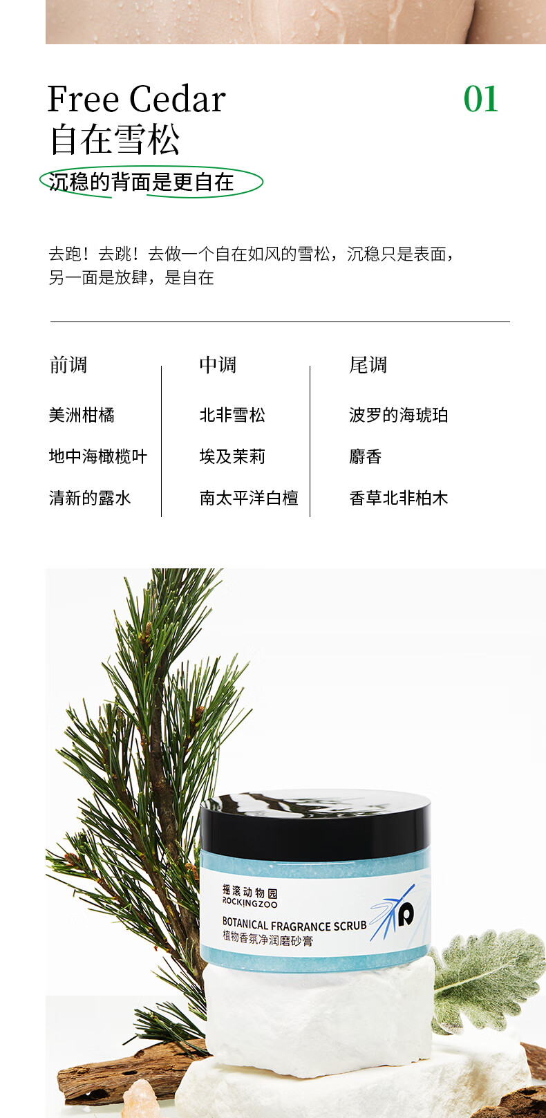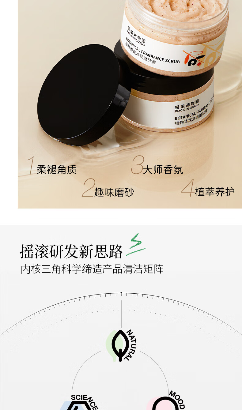 摇滚动物园植物净润身体磨砂膏去角质留香保湿清洁 植物磨砂膏(自在雪松) 250g 1罐