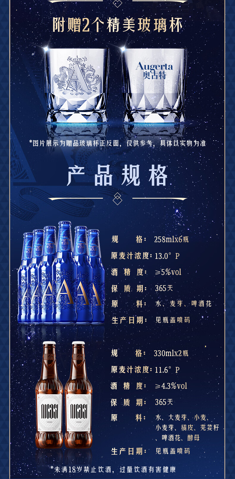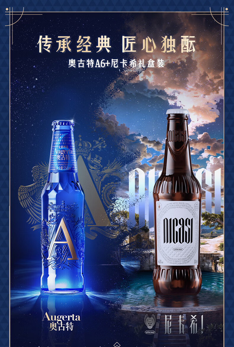 奥古特(Augerta)A6礼盒装箱啤 A6 258*6+尼卡希330*2瓶装啤酒 过节送礼 258mL 8瓶