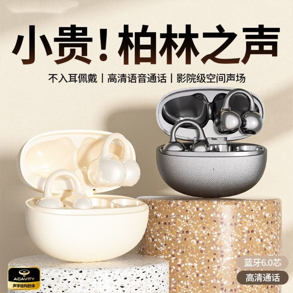 华强北蓝牙耳机【2026最新款丨柏林之声第1名】骨传导蓝牙耳机耳夹式概念无线开放式运动跑步超长续航不入耳挂耳 自然肤 ENC超清通话降噪 标准版【普通音质+5.0蓝牙】