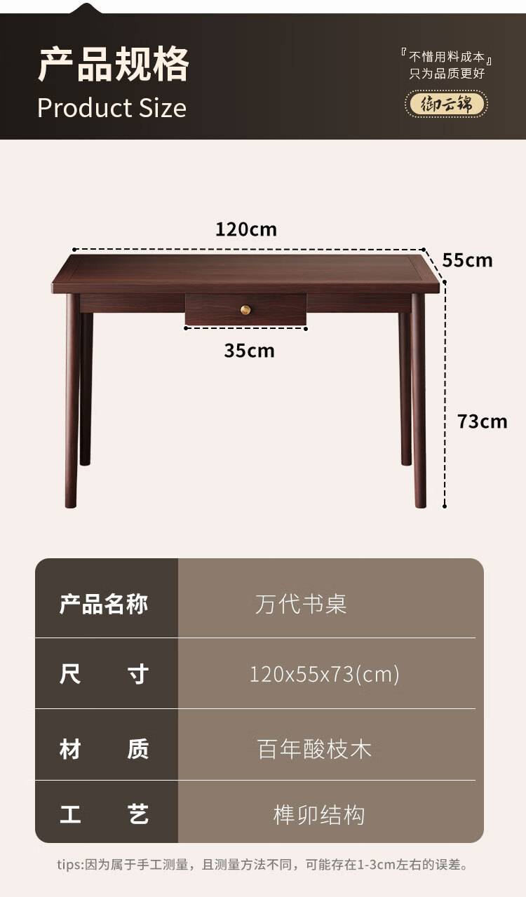 御云锦进口实木书桌画案中式仿古写字台书房办公桌简约自然办公桌书房 【定制专用】详询客服