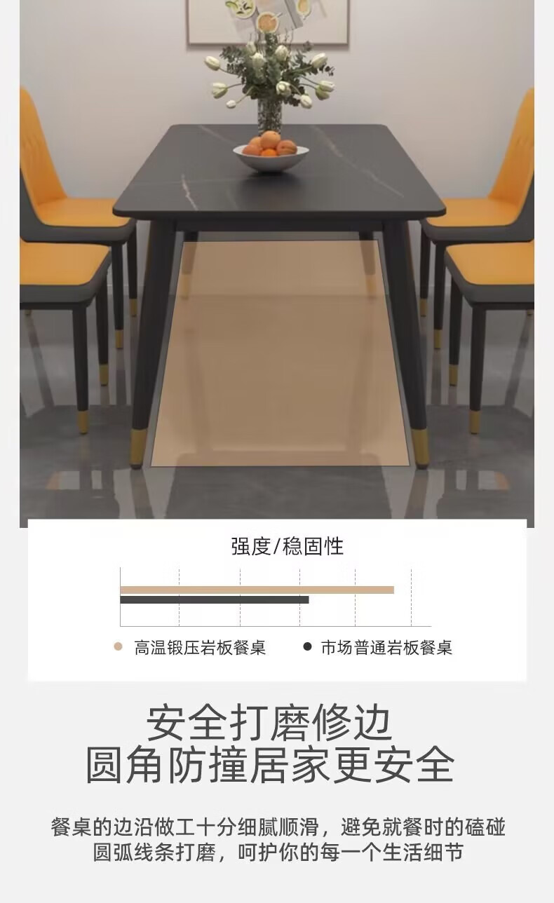 岩板餐桌包安装家用餐桌椅子全套小户型客厅出租房吃饭桌子带底板 160*80亮光灰27mm厚岩板 一桌六椅
