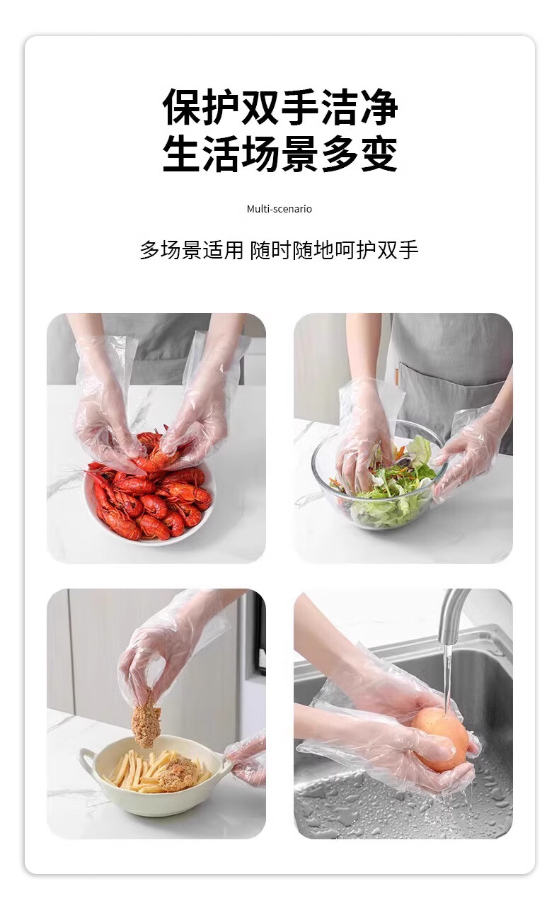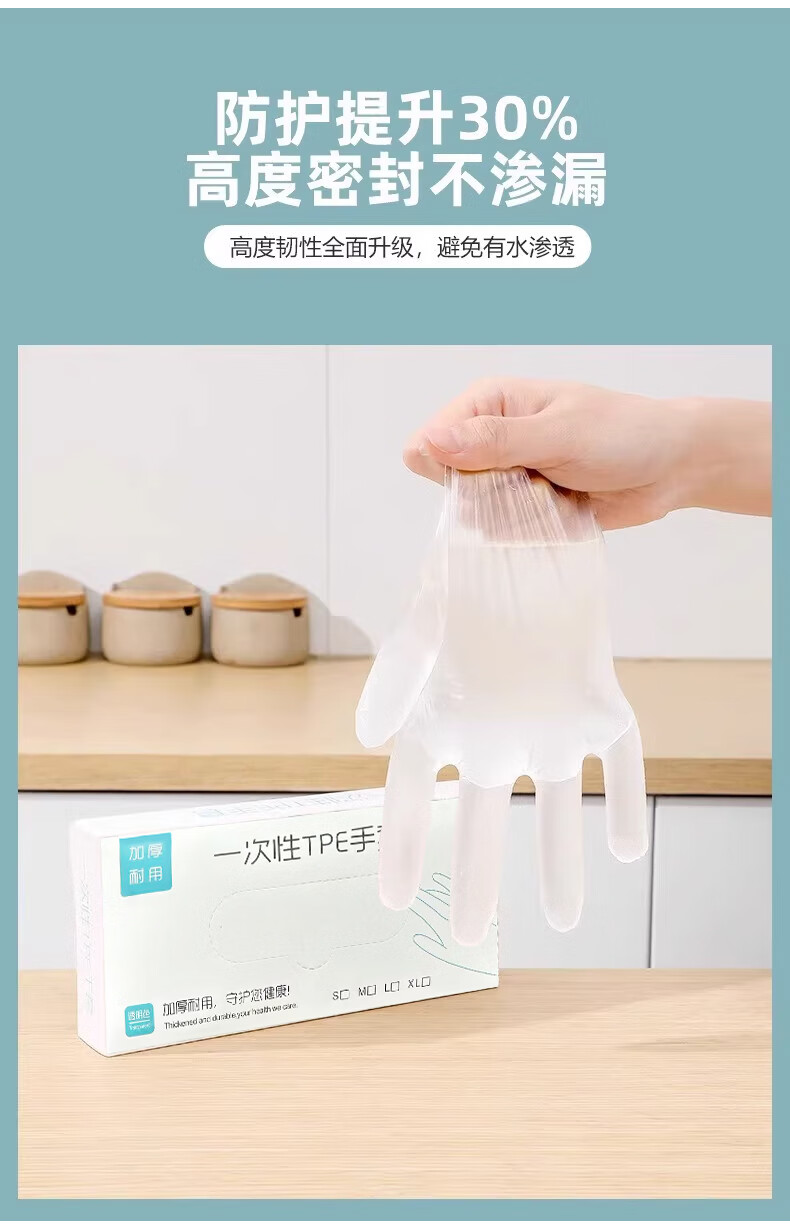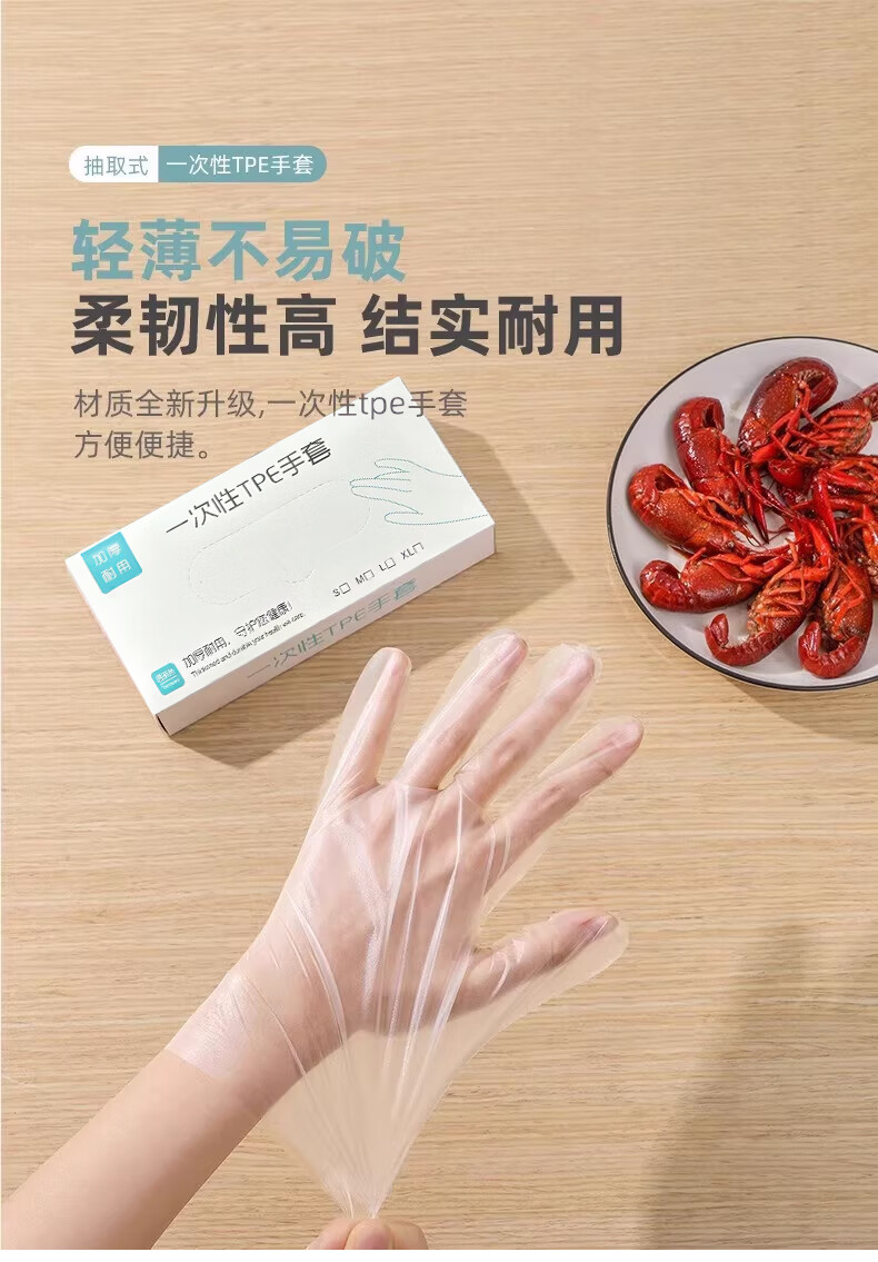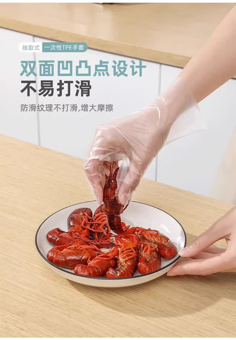 一次性手套食品级专用tpe加厚耐磨厨房餐饮家用龙虾塑料餐饮防水 【白盒装】100只*2盒