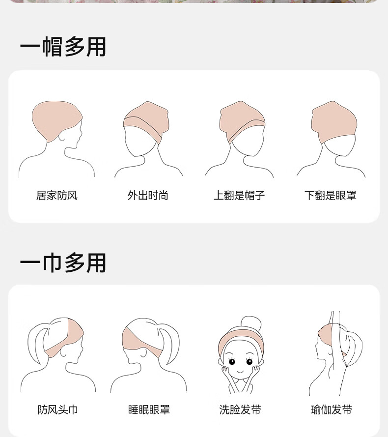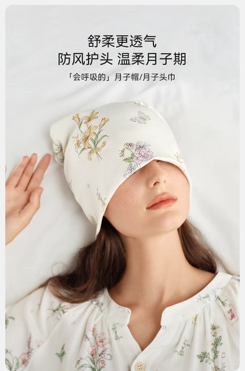 嫚熙(EMXEE)孕妇月子头巾发带弹力丝麻棉洗脸时尚发饰新品 绮幻花信