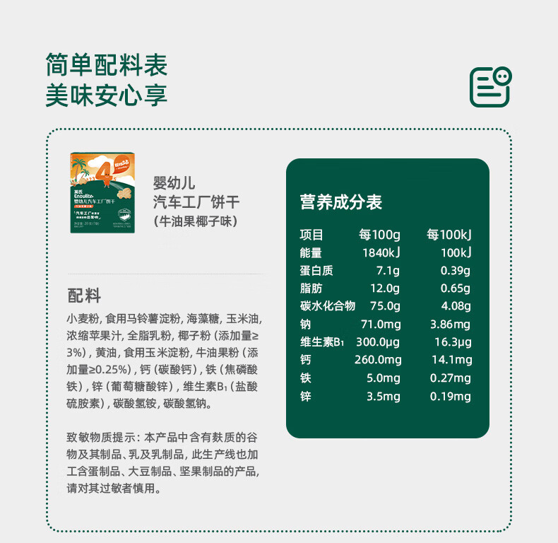 英氏(Engnice)婴幼儿汽车工厂饼干牛油果椰子味 婴儿零食饼干宝宝零食尝鲜20g