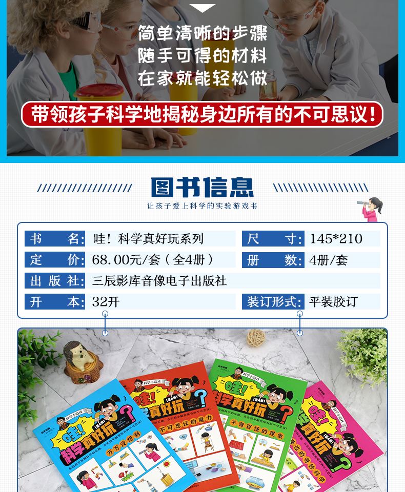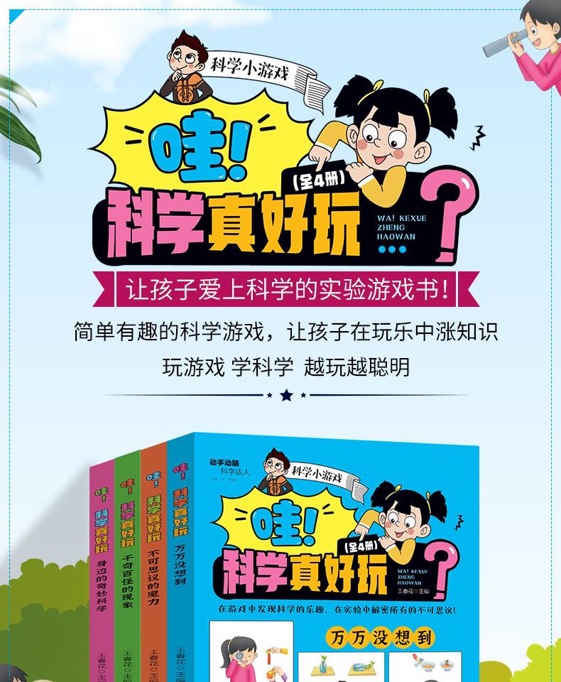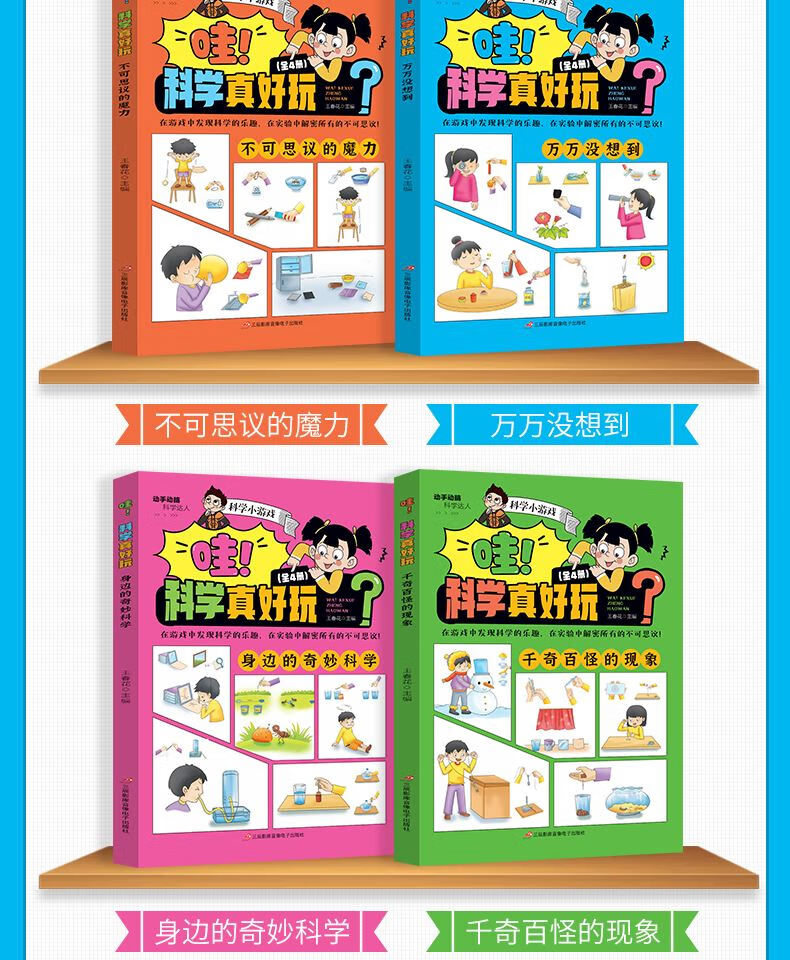 全4册 哇科学真好玩 小学生科学实验书科普类书籍小学课外阅读百科全书儿童物理化启蒙物理化学数学启蒙书 【全4册】哇!科学真好玩