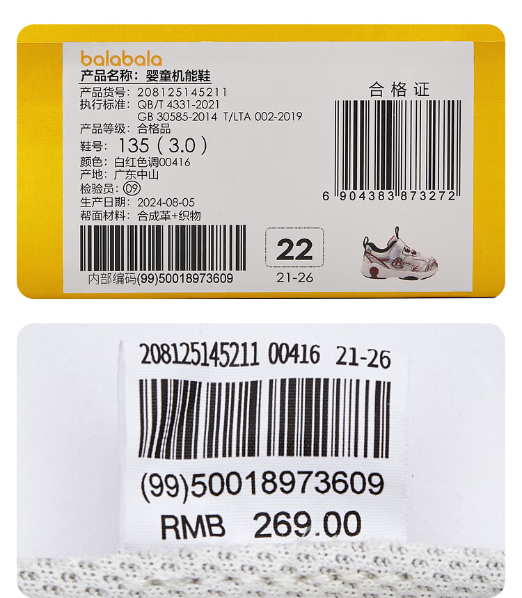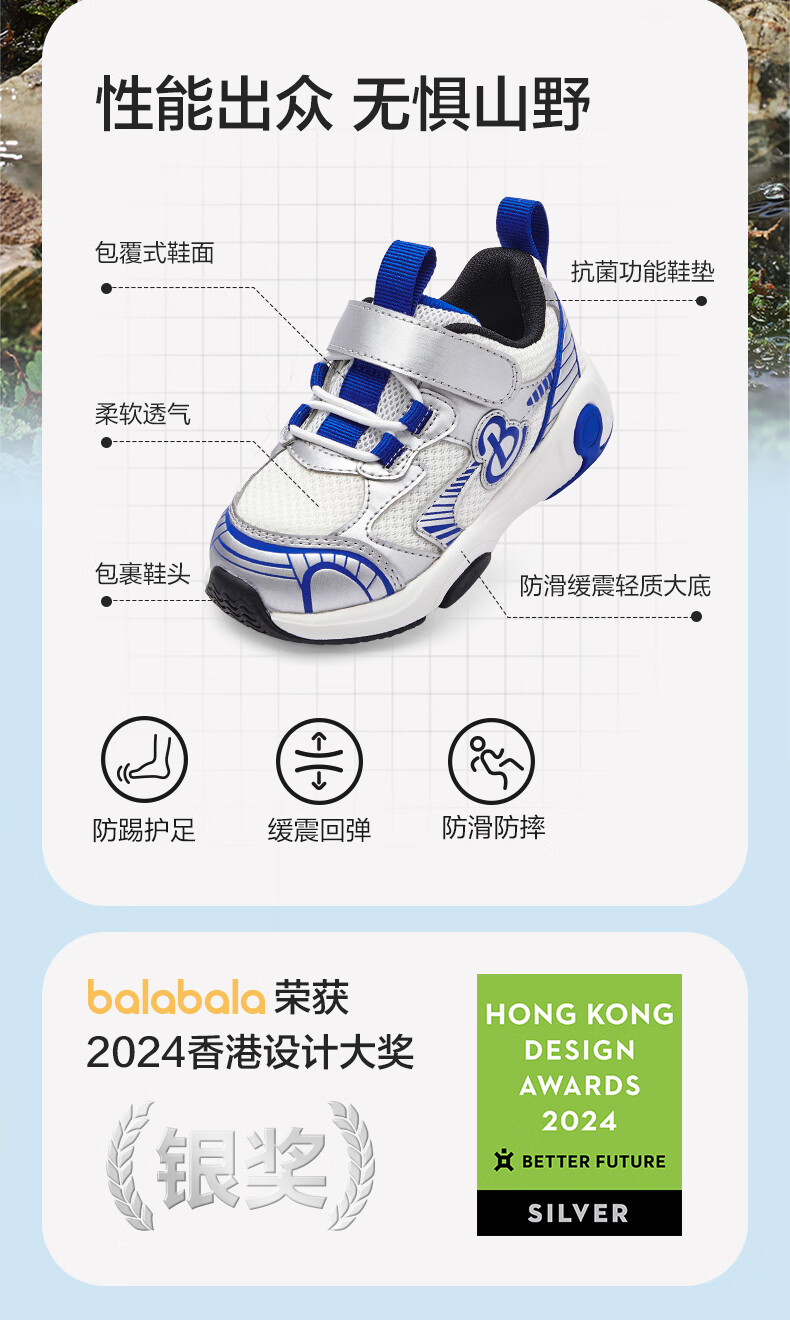 巴拉巴拉童鞋儿童学步鞋男童女童鞋子春季新款鞋防滑舒适户外小童 蓝色调00388 25