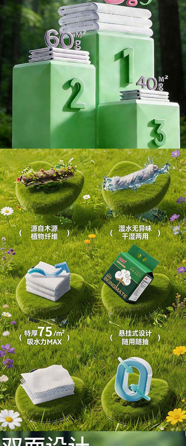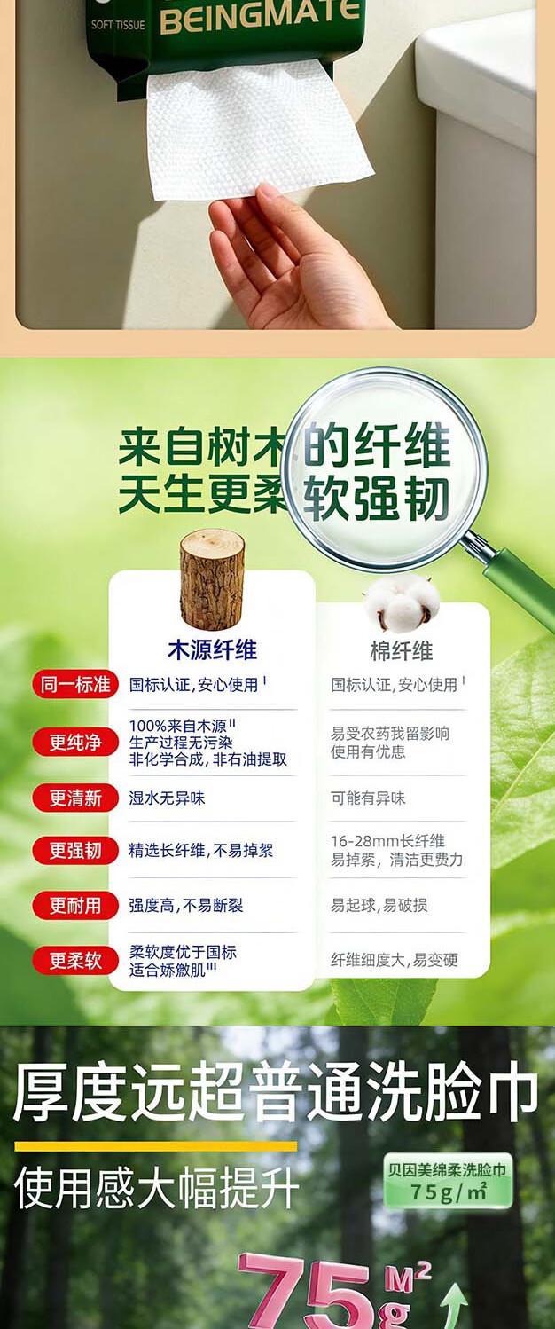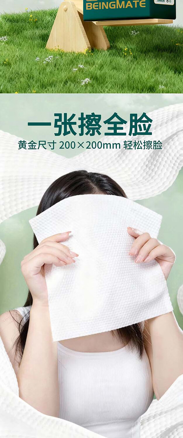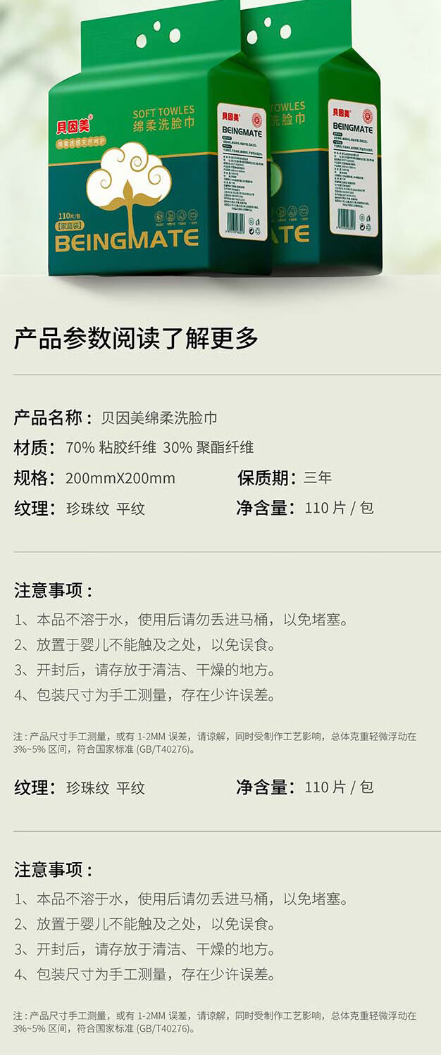 贝因美(Beingmate)一次性洗脸巾加大加厚悬挂式绵柔巾干湿两用洁面擦脸巾 110抽3提【悬挂式实惠装】