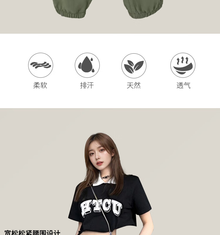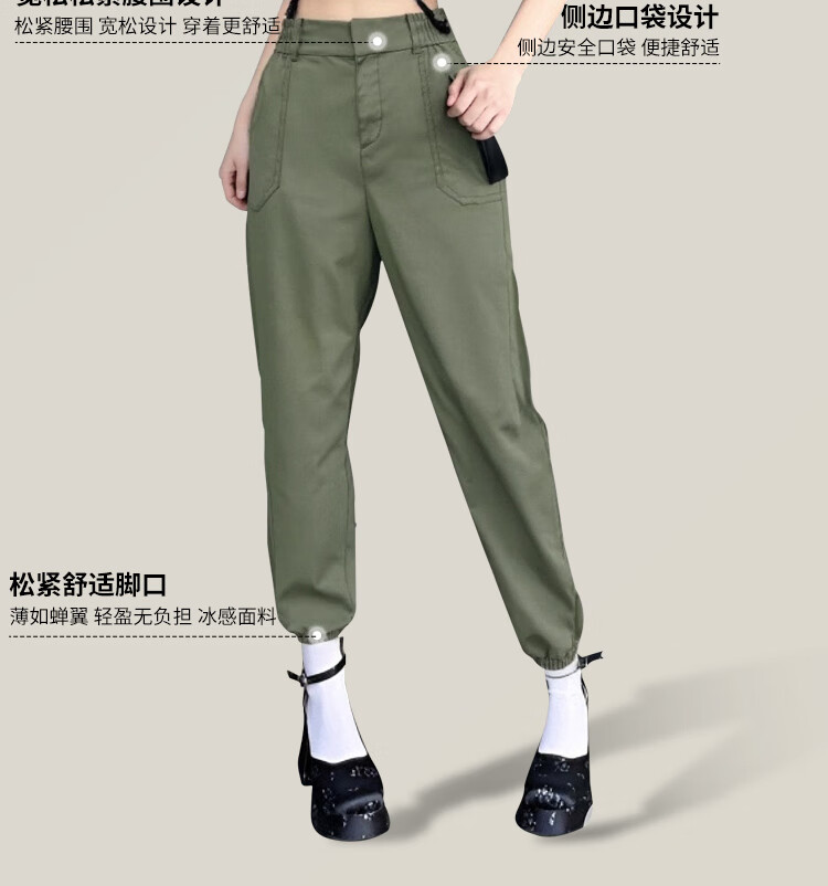 RUNFOND轻奢休闲裤女2025夏季新款显瘦宽松百搭运动束脚长裤 卡其色 轻薄 XL