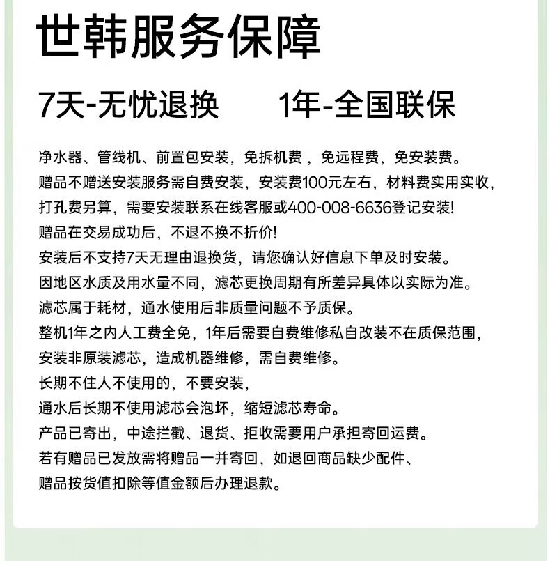 世韩(SAEHAN)富锶4:1微废水纯水护膜】10S净水器管线机套装家用厨房直饮RO反渗透厨下净水机1000G大通量净饮机 1000G富锶矿物质水