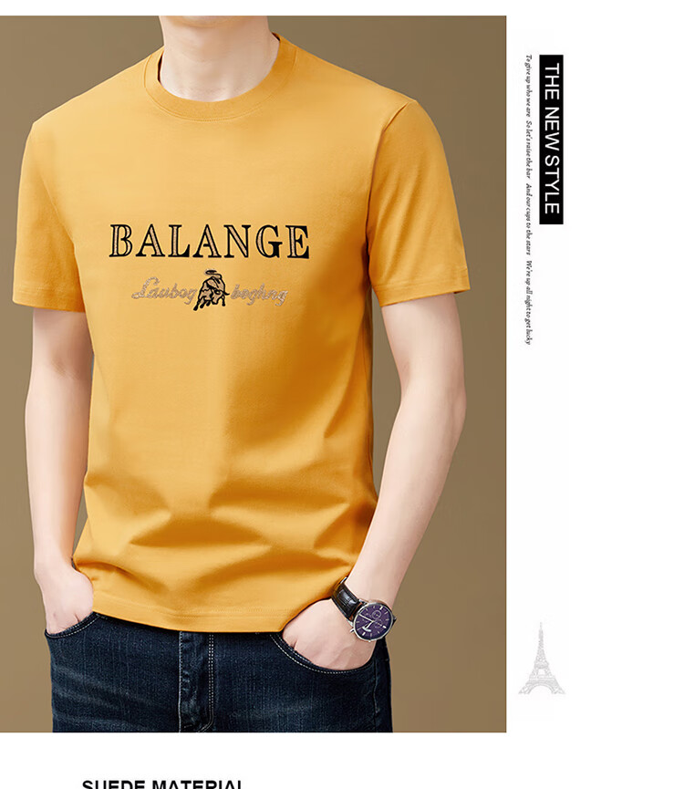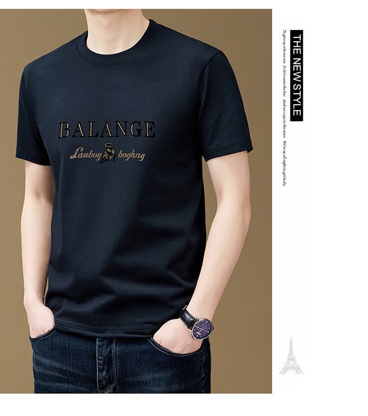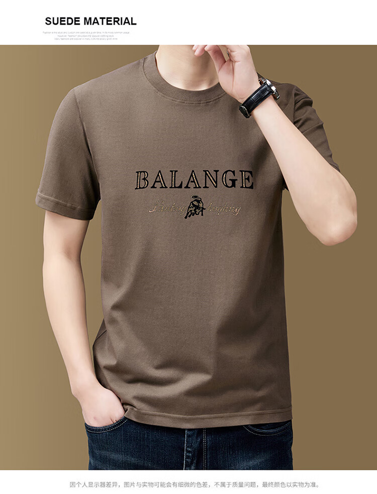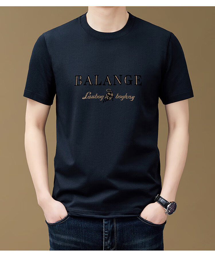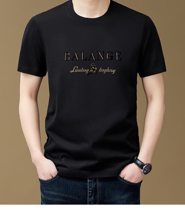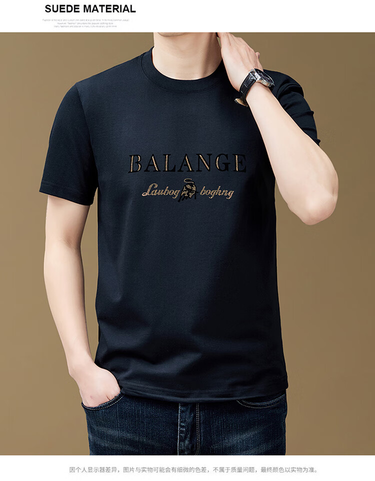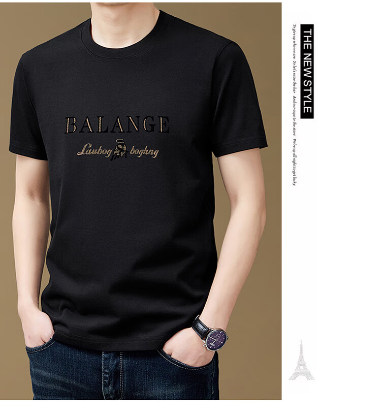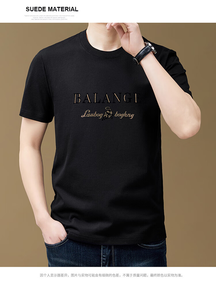 罗蒙(ROMON)纯棉短袖t恤男新款潮流时尚圆领印花上衣夏季休闲凉感半袖体恤T 黑色8873 2XL 180
