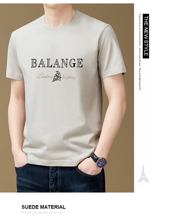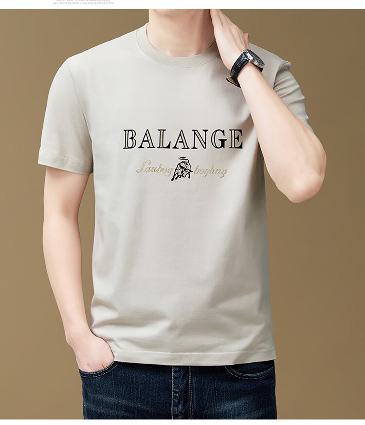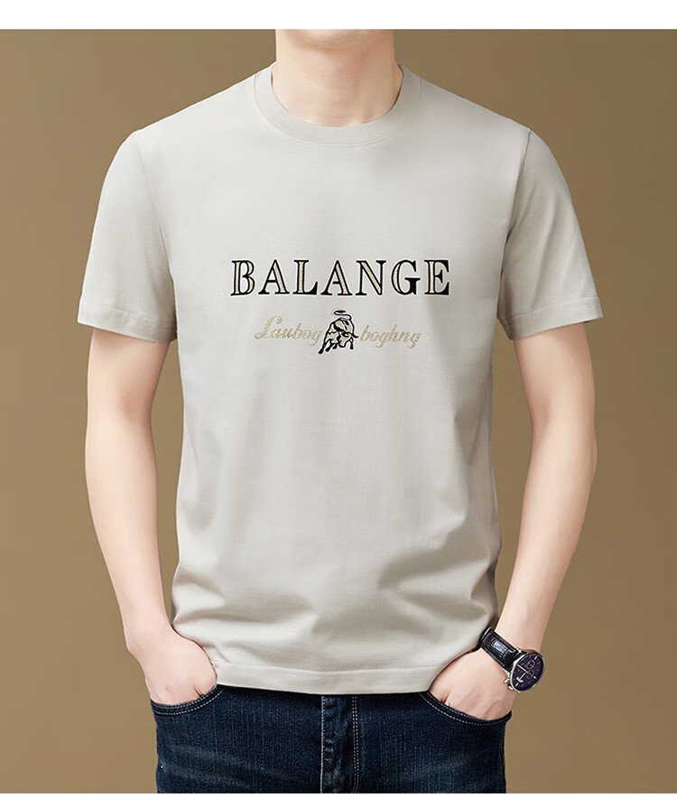 燠阳夏季新款短袖t恤男装休闲简约潮流百搭polo衫纯色刺绣打底衫T恤 灰色-战马标 2XL 【130-145斤】