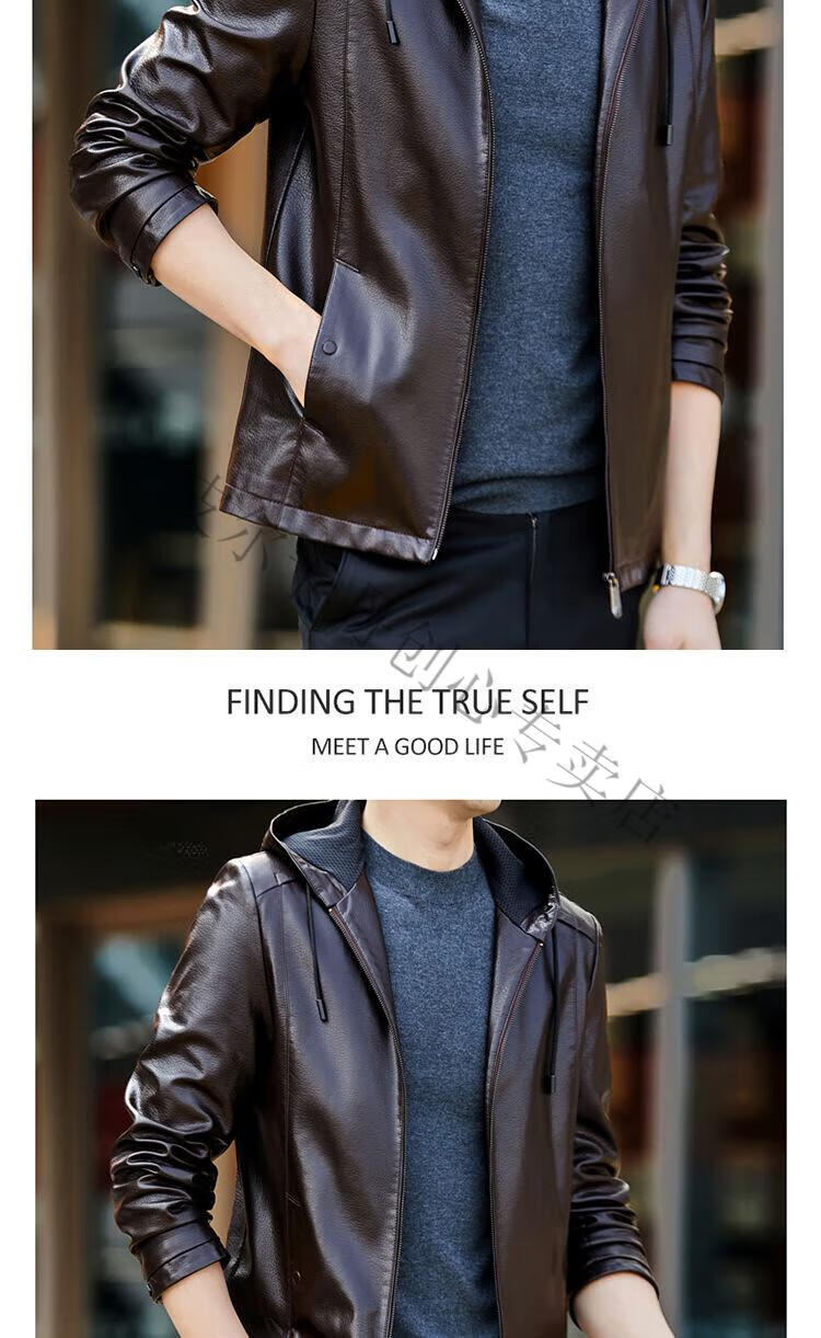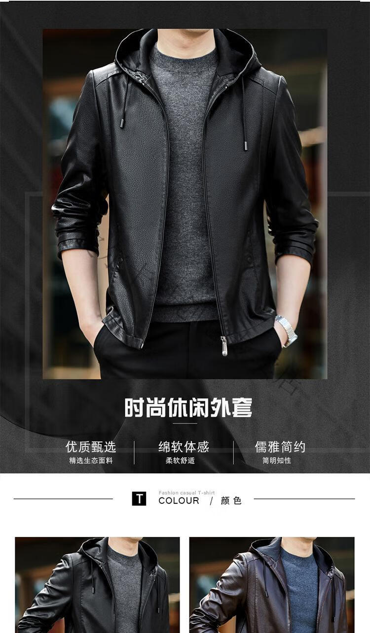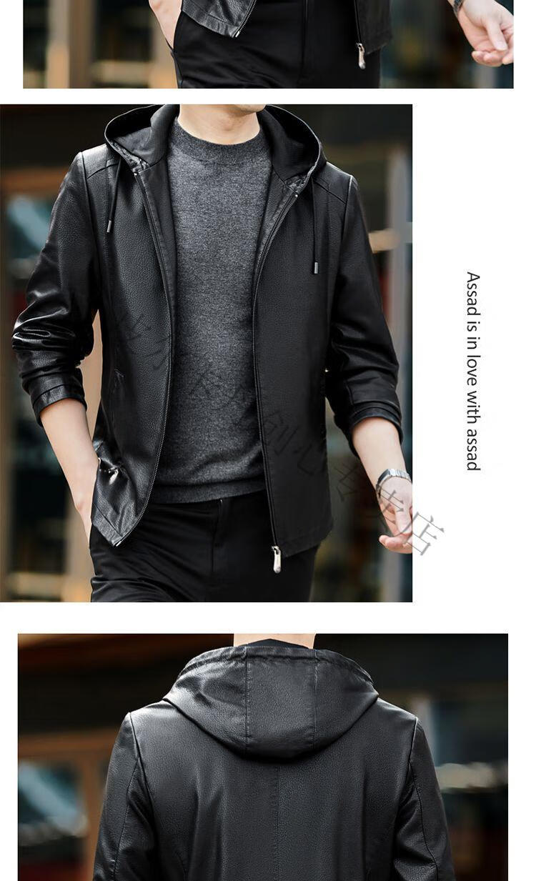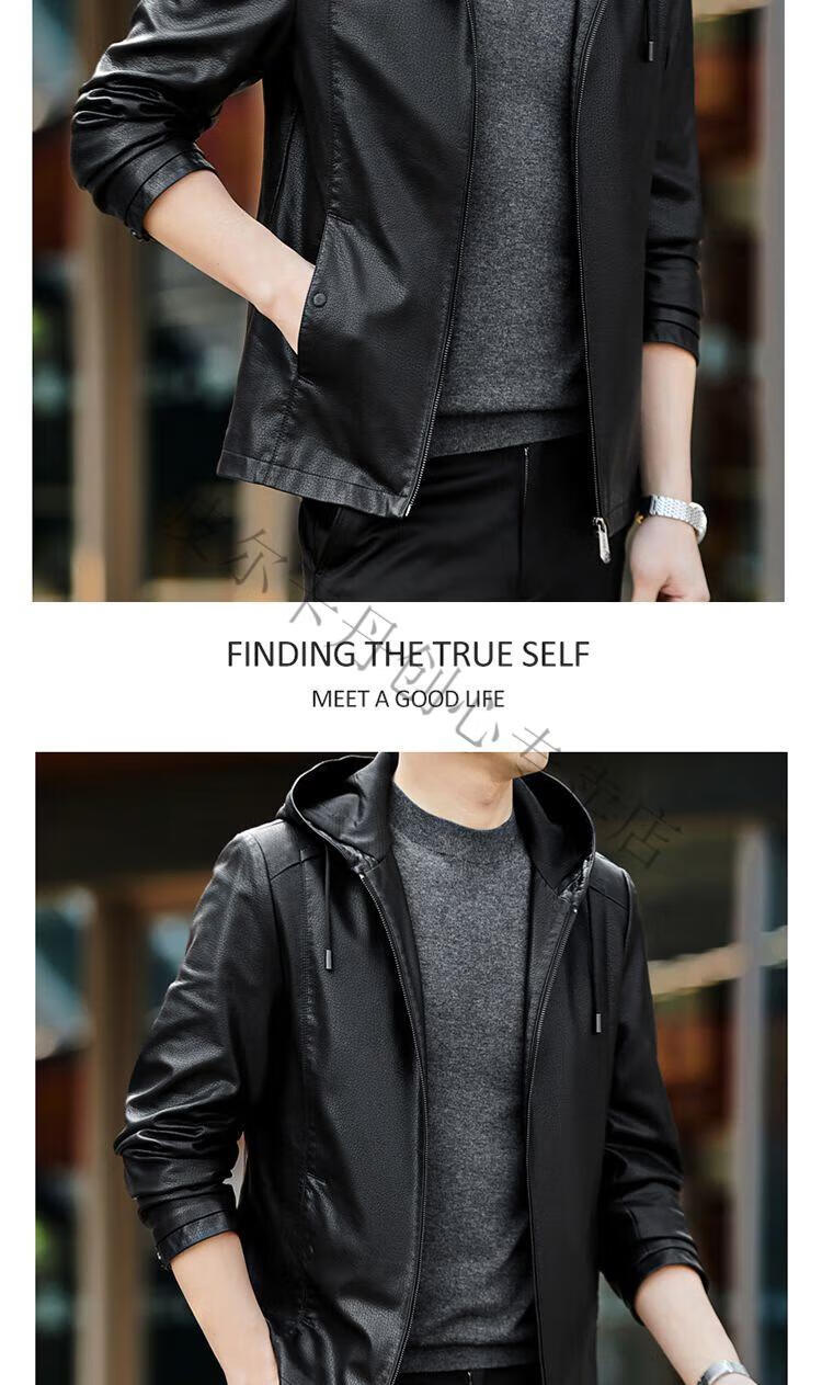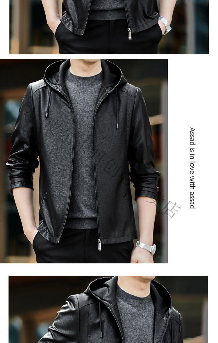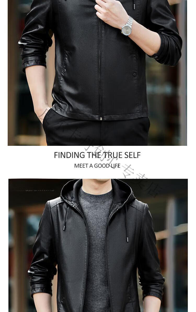 皮尔卡丹(pierre cardin)真皮皮衣男真牛皮连帽春秋新款纯皮夹克短款修身外套针织 黑色H2226【连帽】 M 170【95-120斤左右】