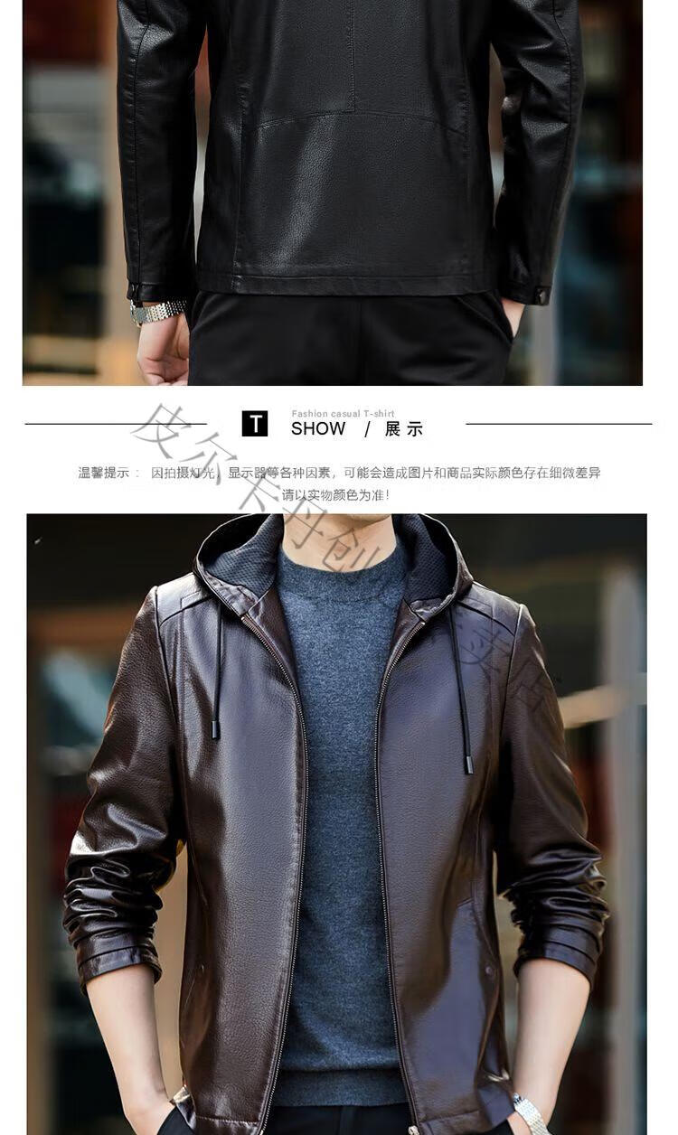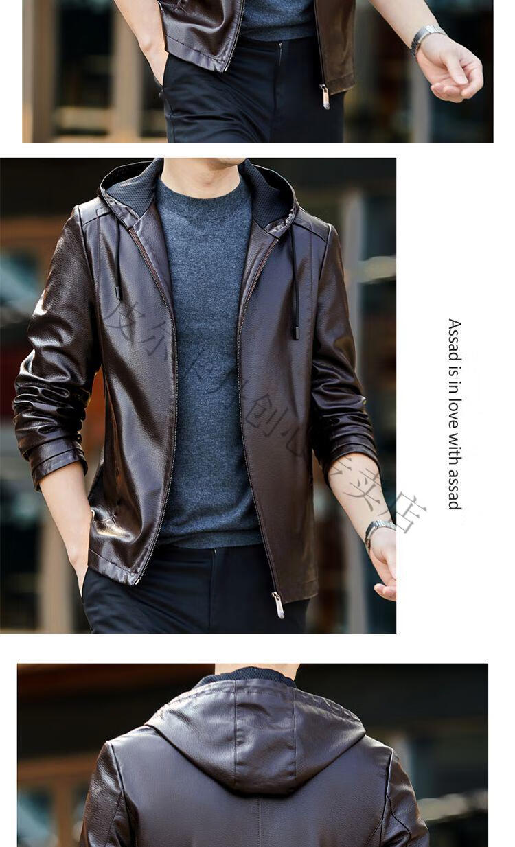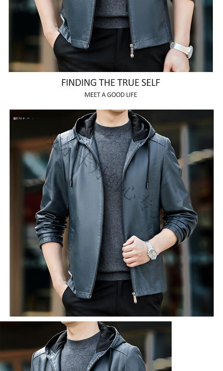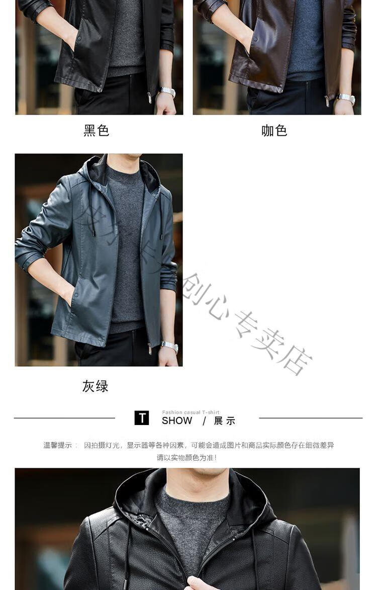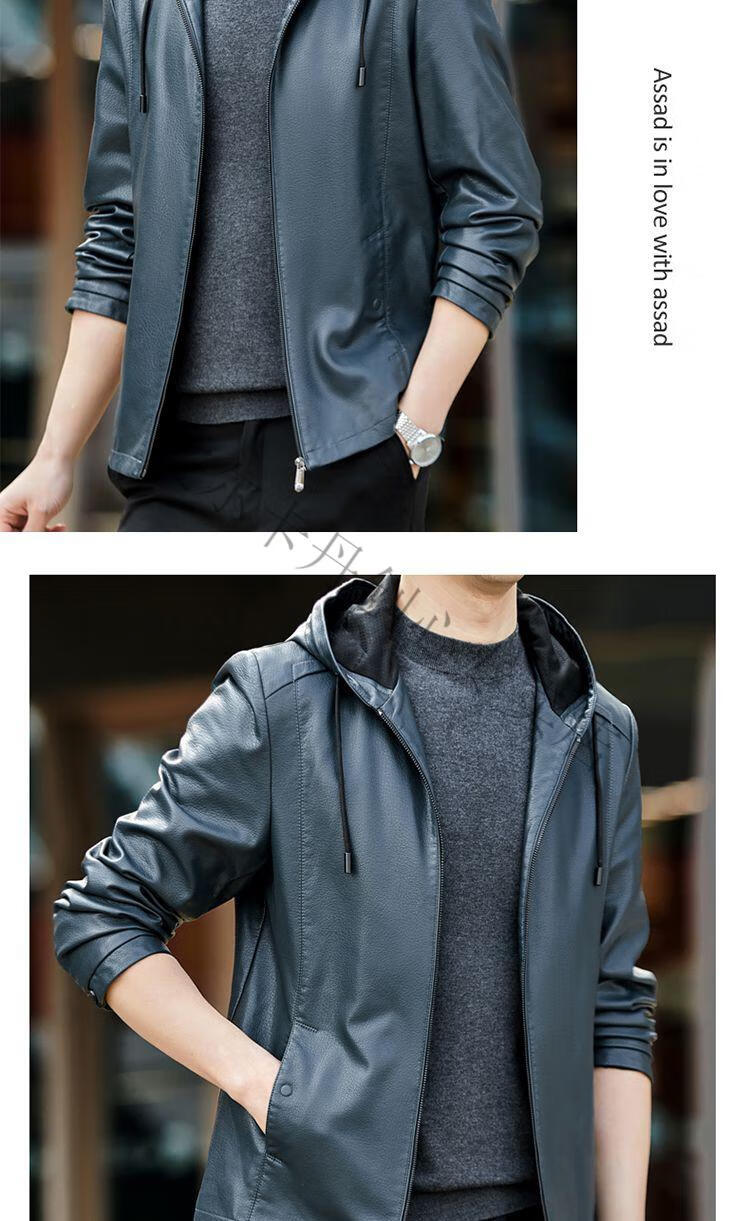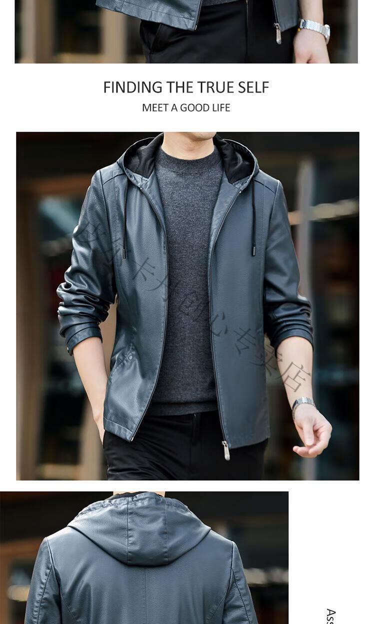 皮尔卡丹(pierre cardin)真皮皮衣男真牛皮连帽春秋新款纯皮夹克短款修身外套针织 黑色H2226【连帽】 M 170【95-120斤左右】