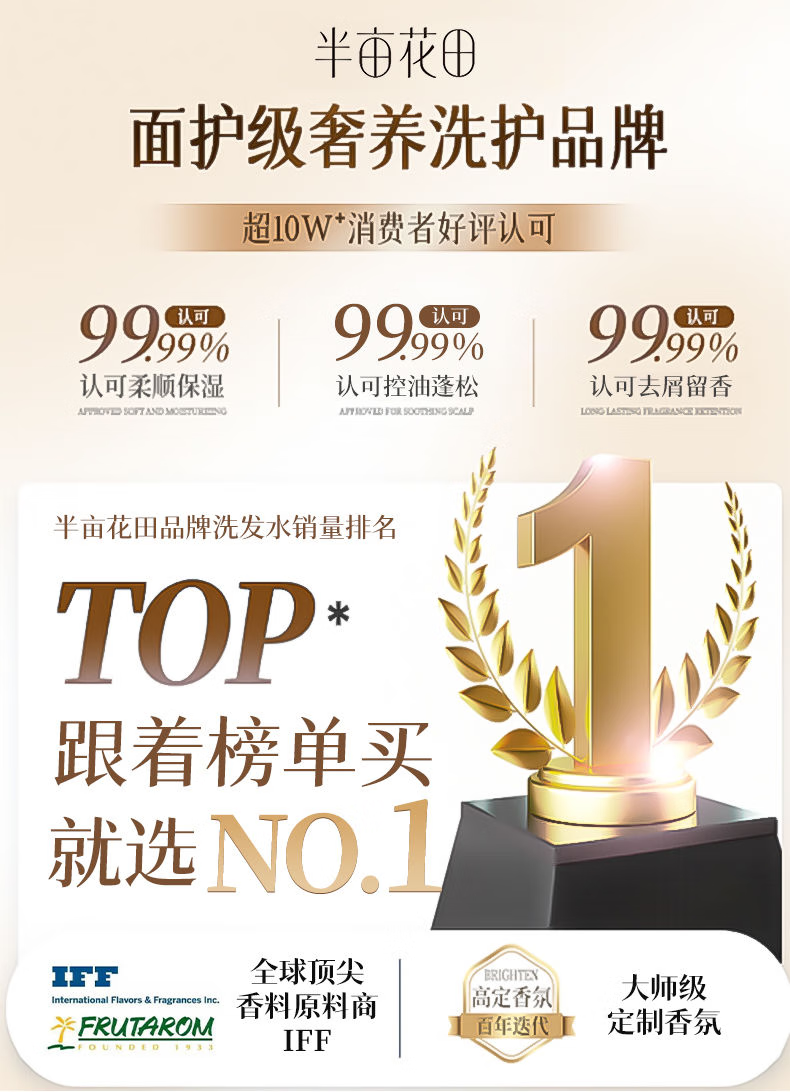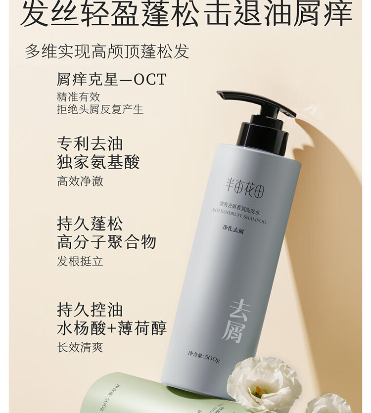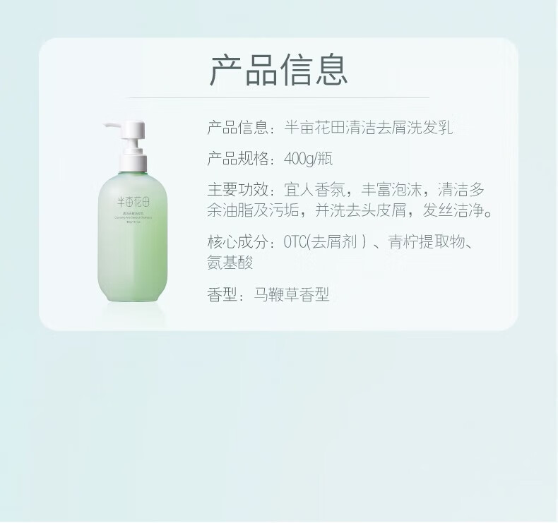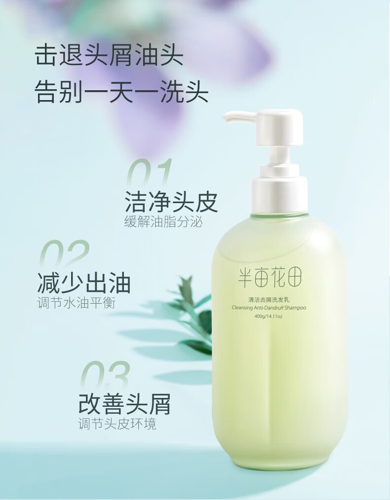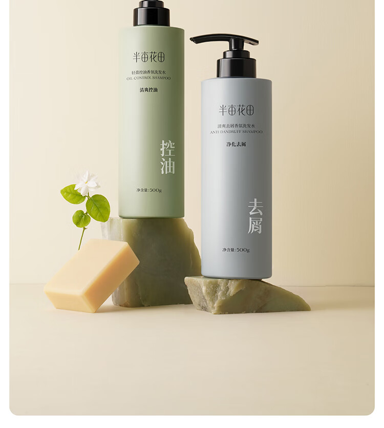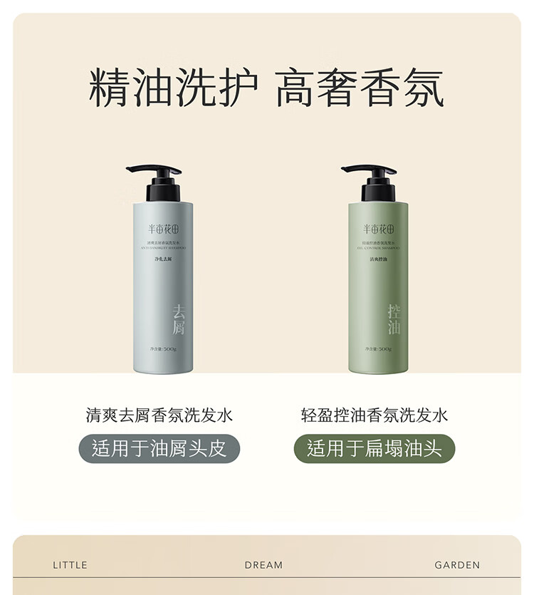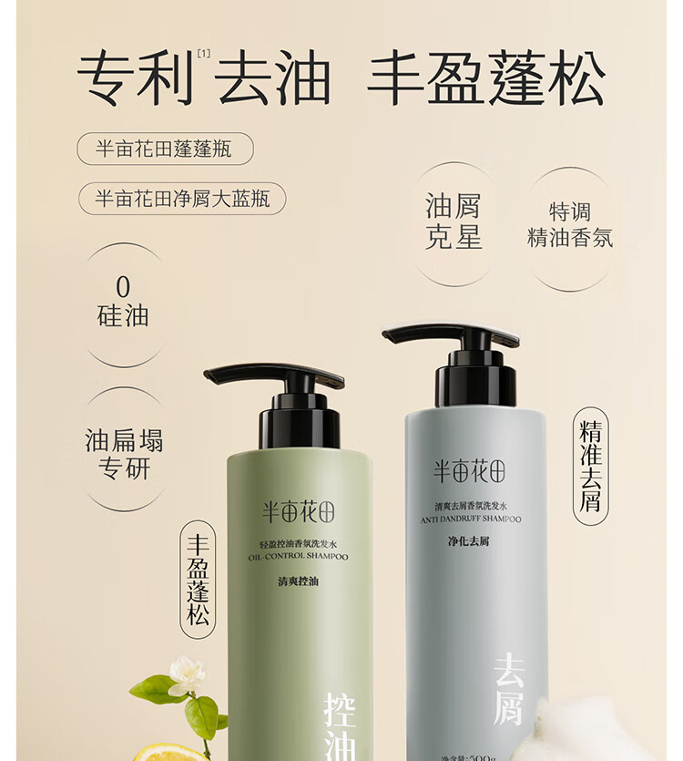 半亩花田香氛洗发水护发素套装蓬松控油祛屑洗发露柔顺持久留香洗发膏女男 控油400g+沐浴露400g