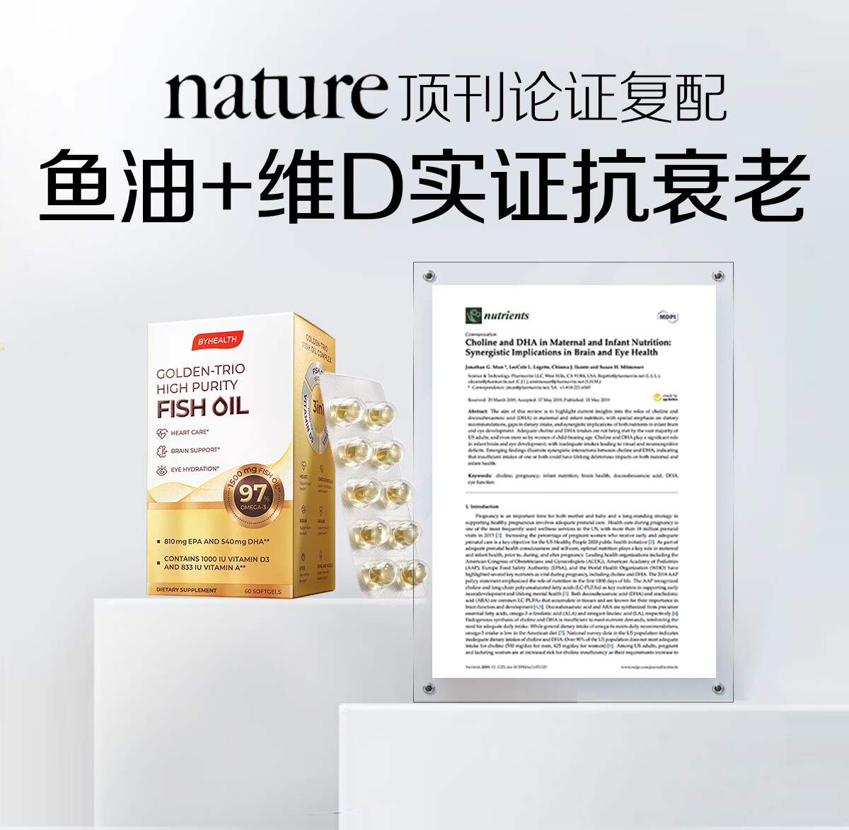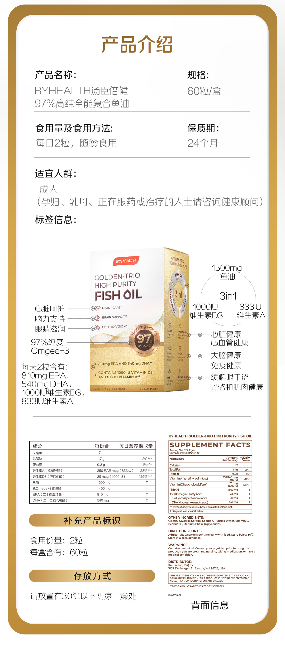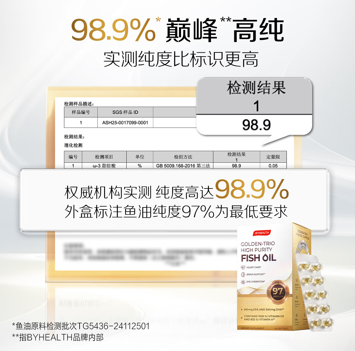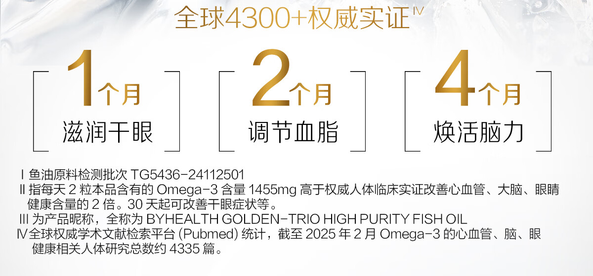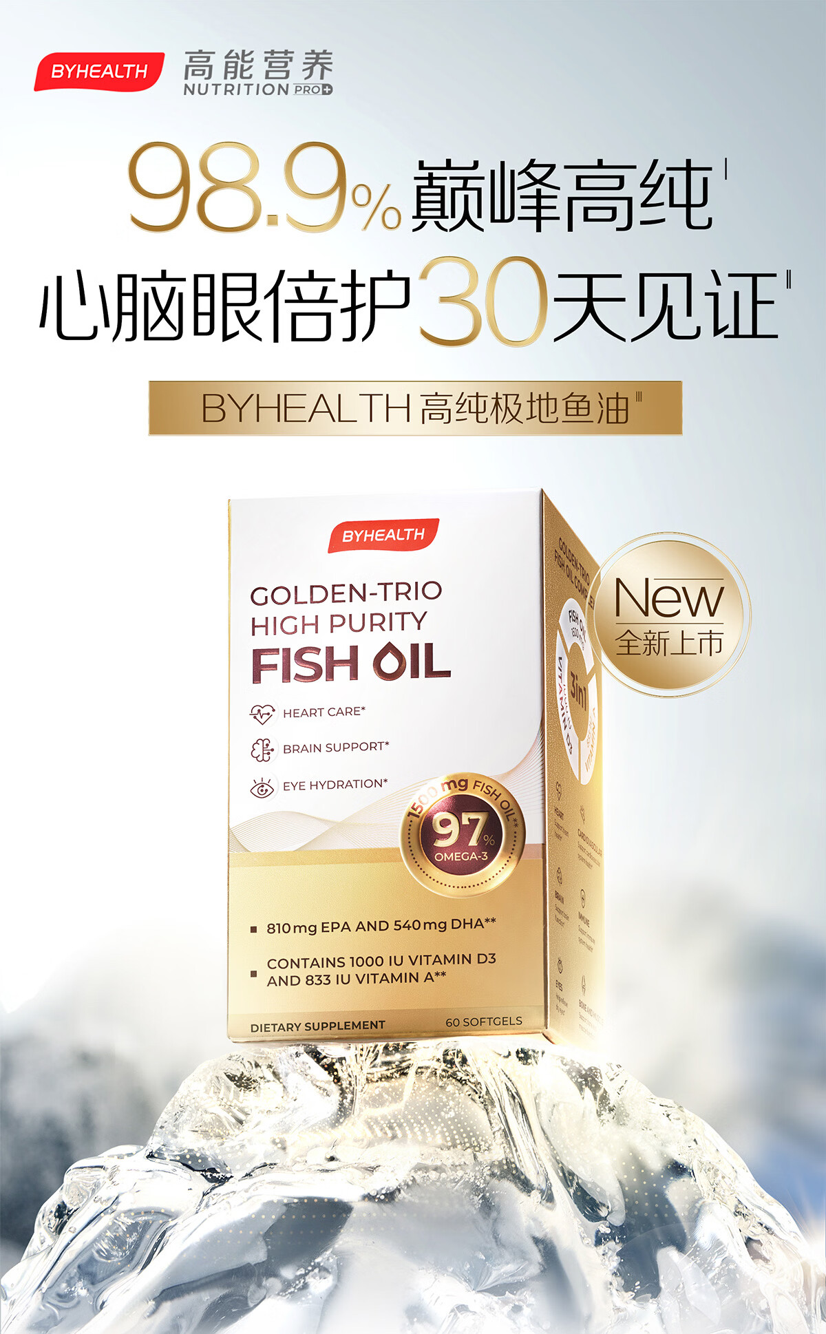 BYHEALTH深海鱼油omega-3高纯度95%以上EPA辅助降血脂三高中老年人dha 【三高/失眠/抗炎适用】98.8%鱼油 60粒*1盒