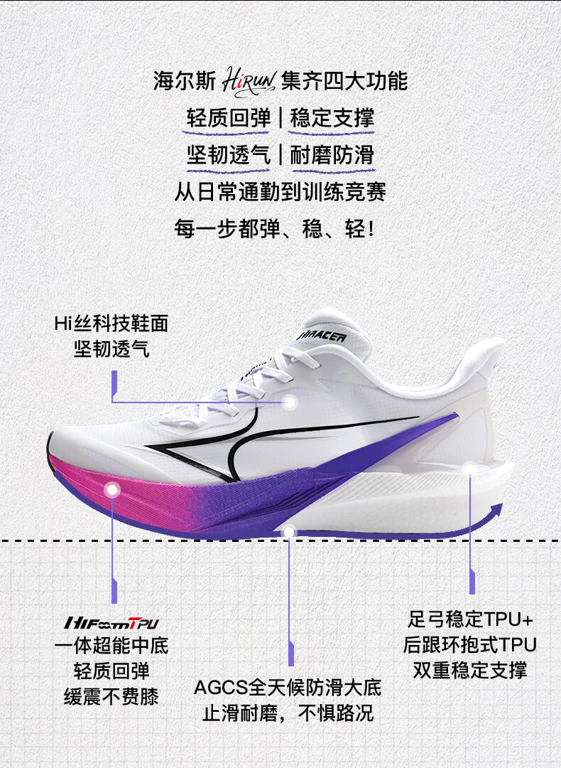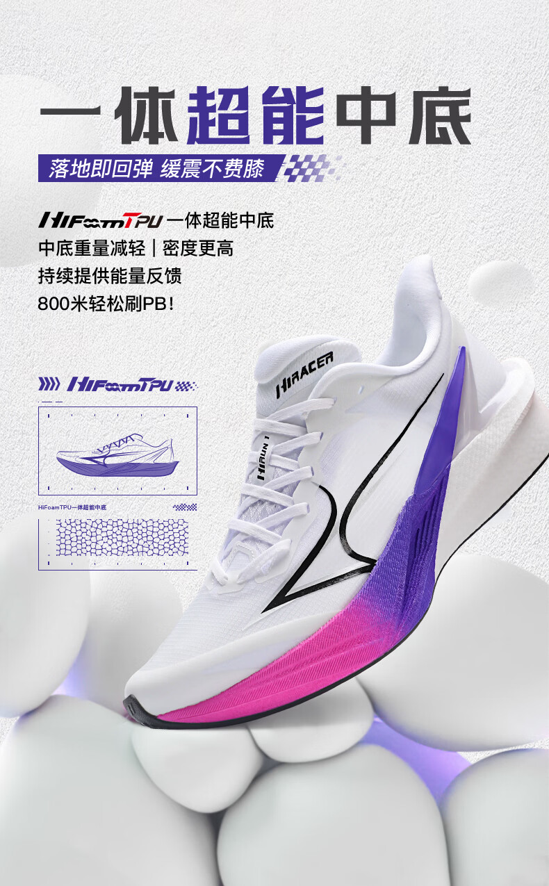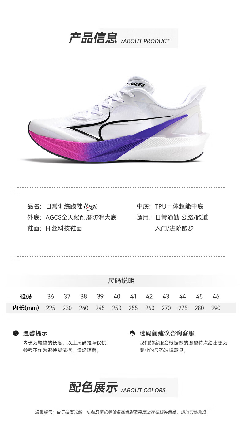 海尔斯(HEALTH)跑鞋嗨跑hirun新款跑步鞋男女中考体测减震竞速训练专业运动鞋子 幻影玫紫 偏小建议拍大一码 46 偏小建议拍大一码