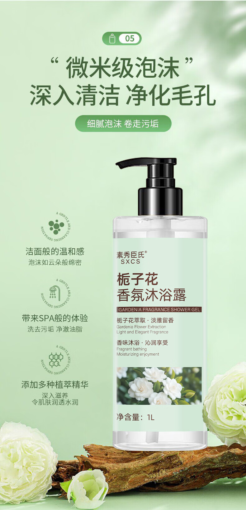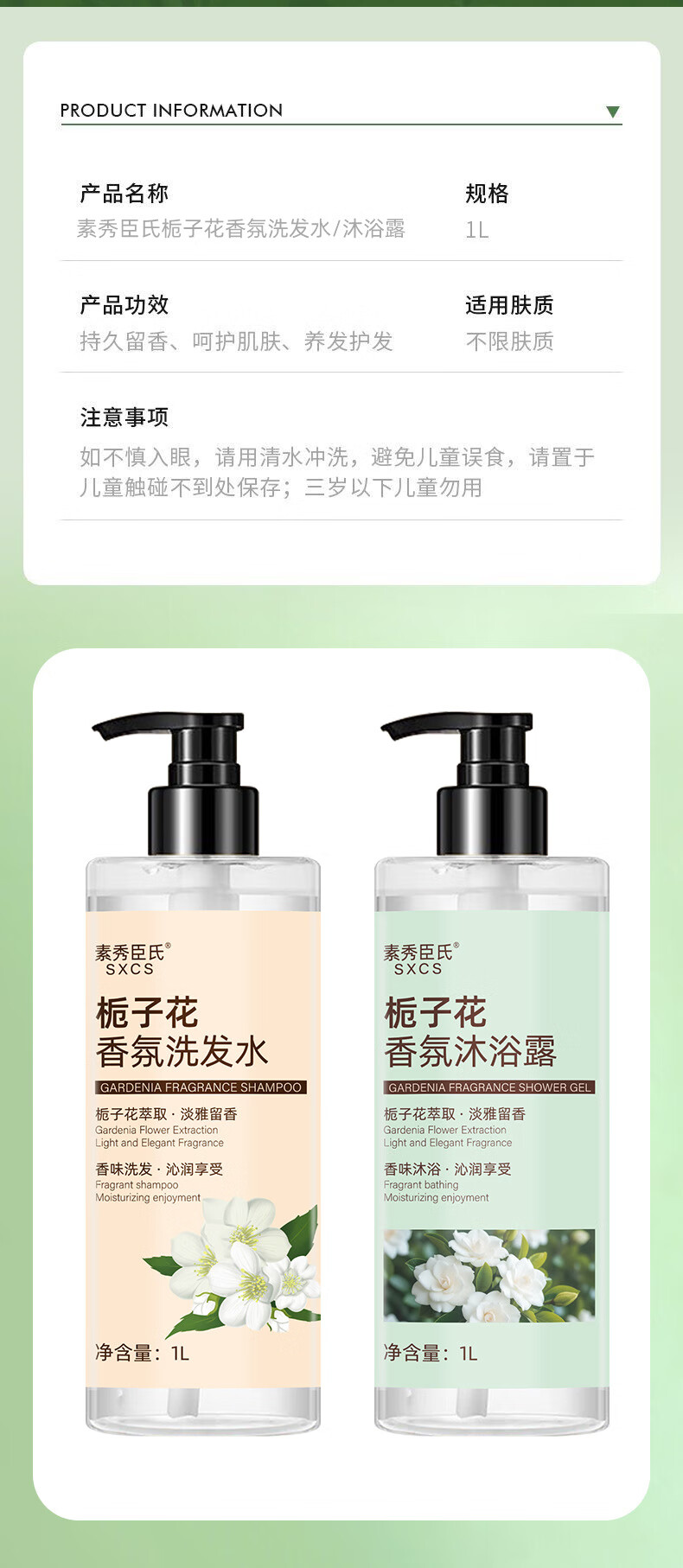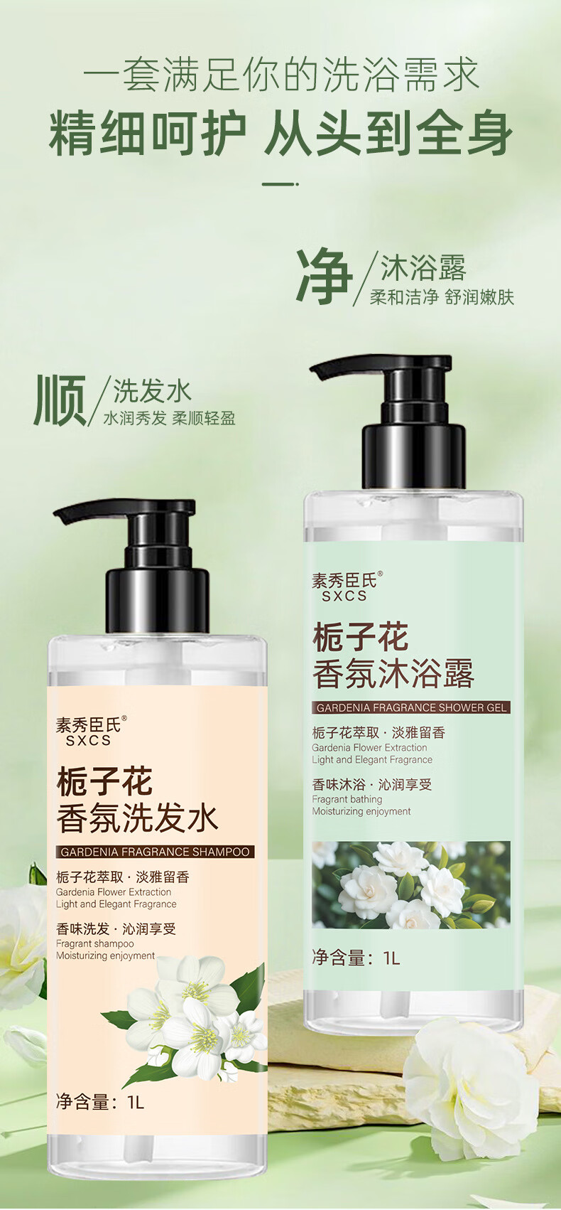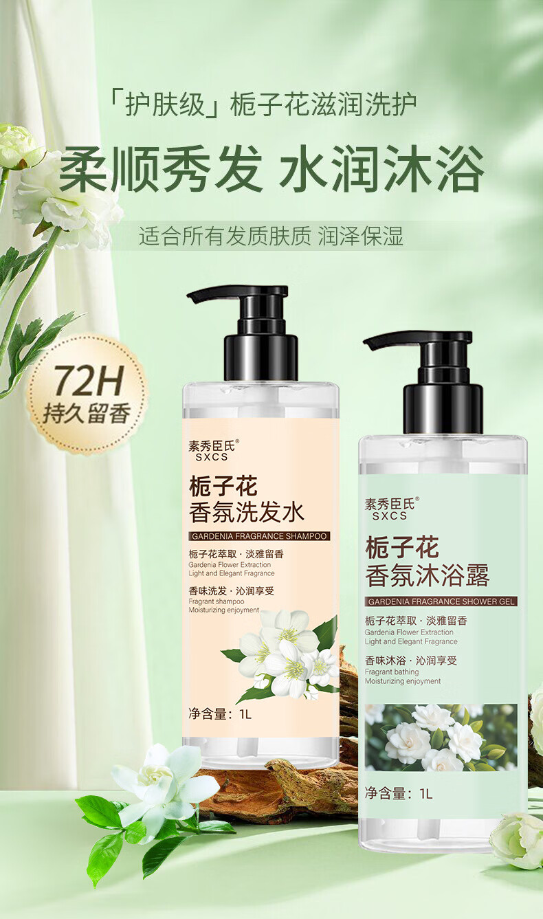 素秀臣氏栀子花香味香皂洗发水沐浴露套装冲凉液神器洗澡洗护身体乳硫磺皂 栀子花香氛沐浴露 1000ml 2瓶
