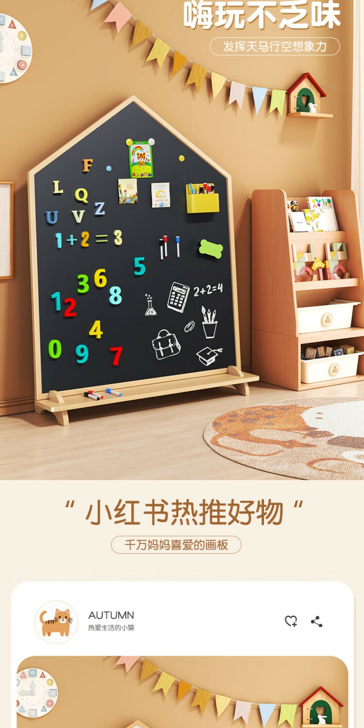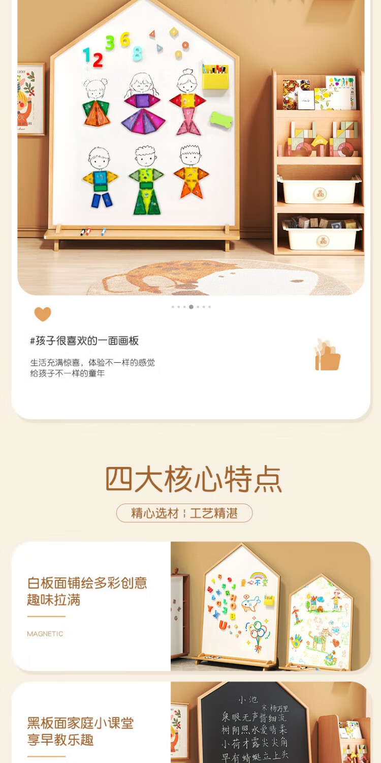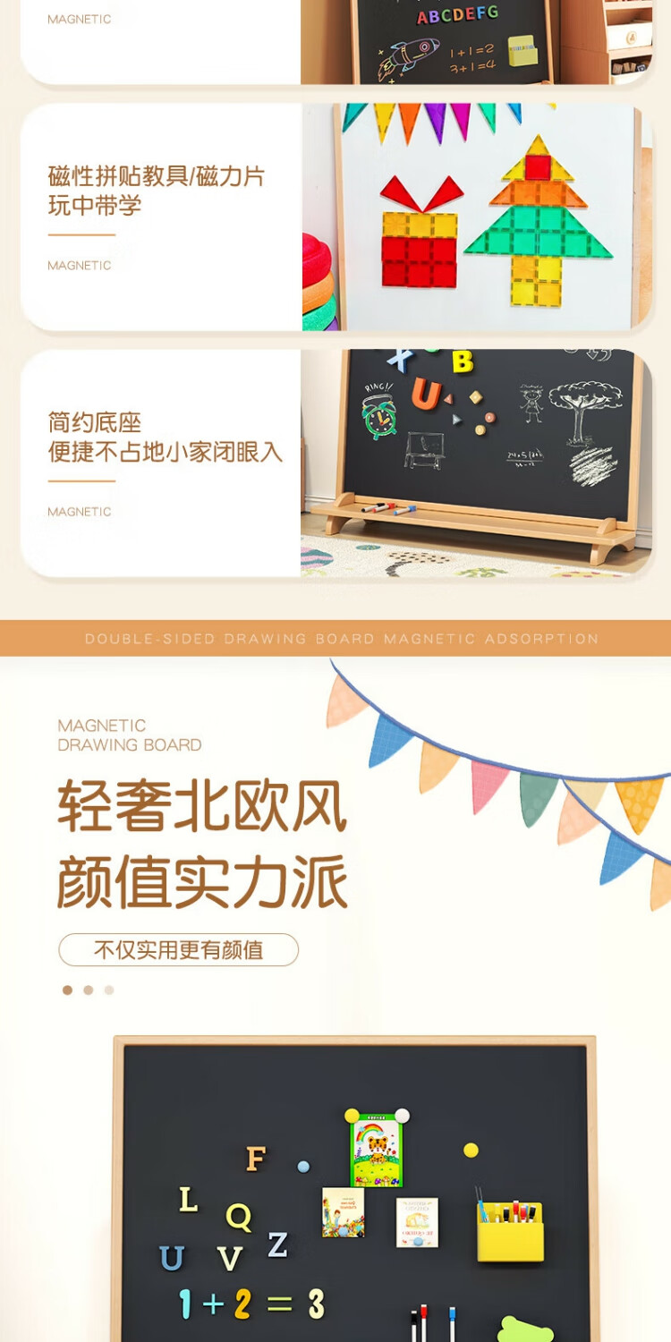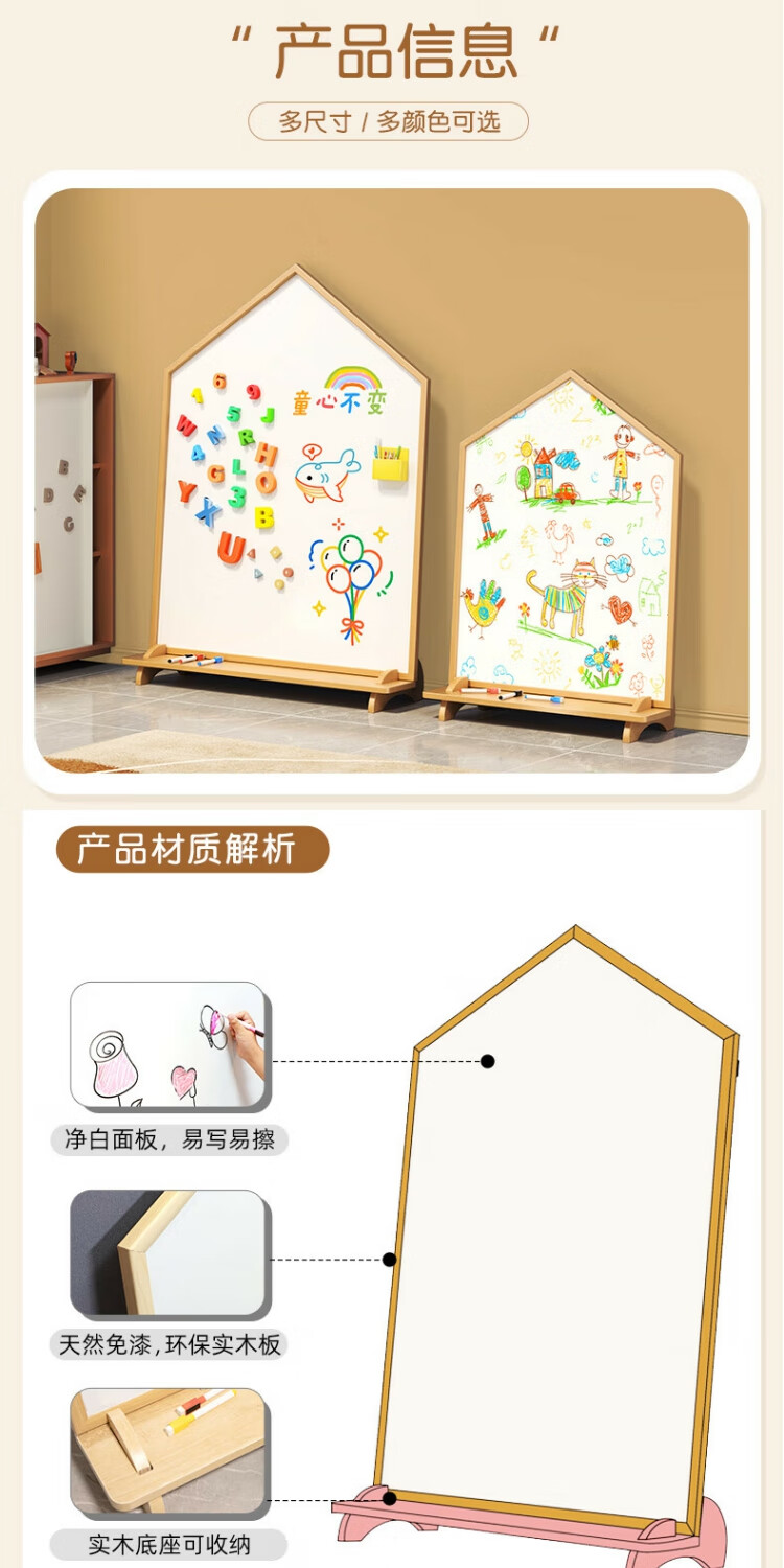 磁博士ciboshi家用儿童画板宝宝磁性双面小黑板支架式涂色涂鸦移动可擦写字白板 【米色】方型画板90*120cm带底座】双面白+黑