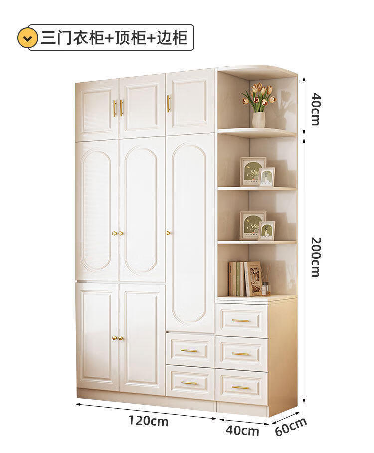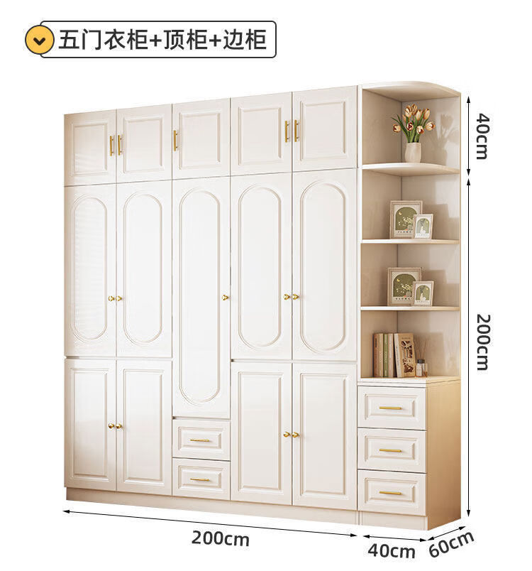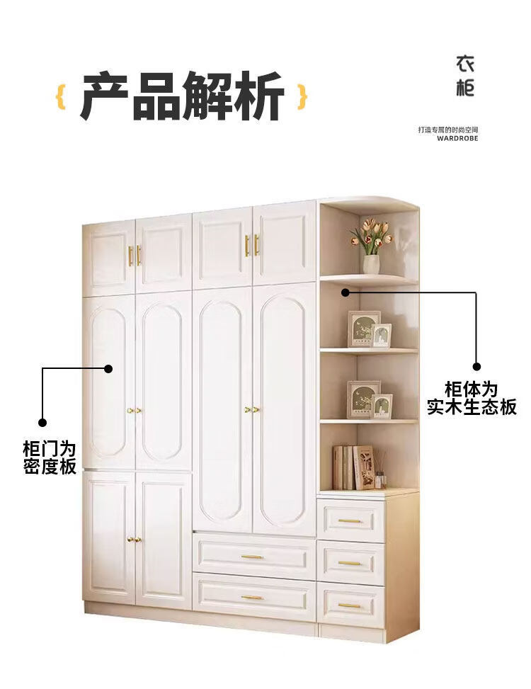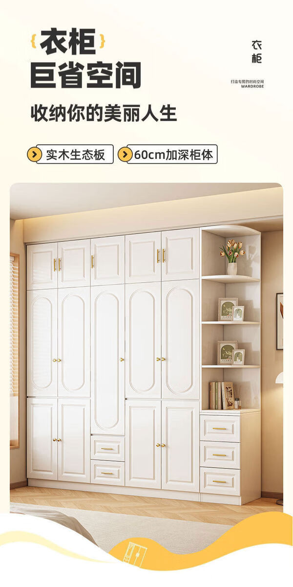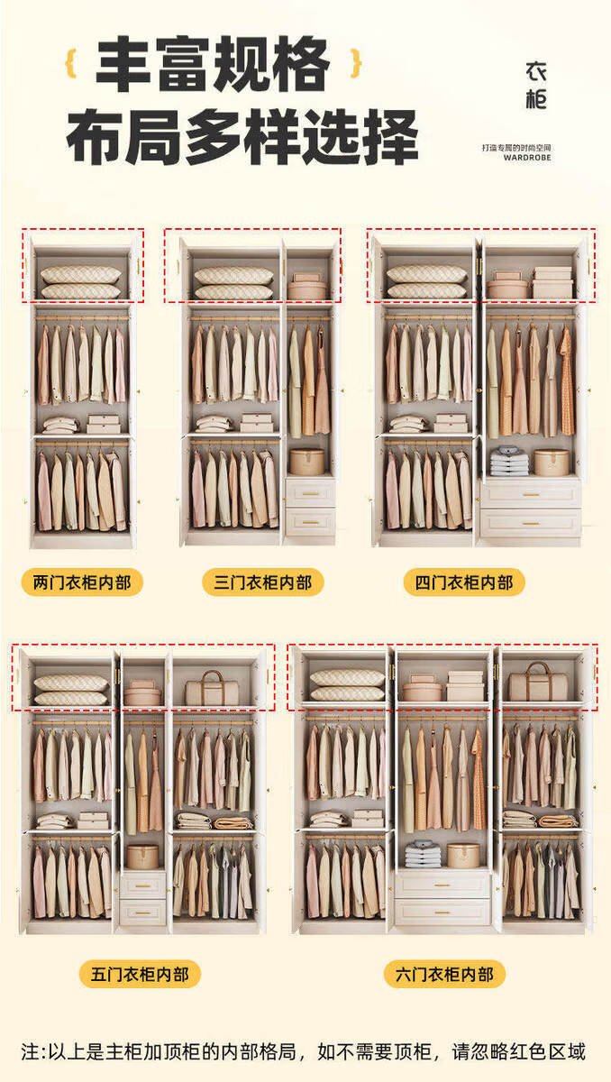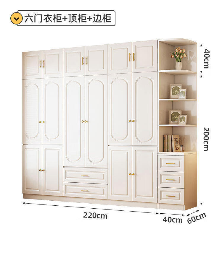 溥畔衣柜卧室家用儿童实木柜子2026新款爆款新型全挂式定制衣橱收纳柜 [6门]长220x深60x高200主柜+顶柜+边柜 包安装