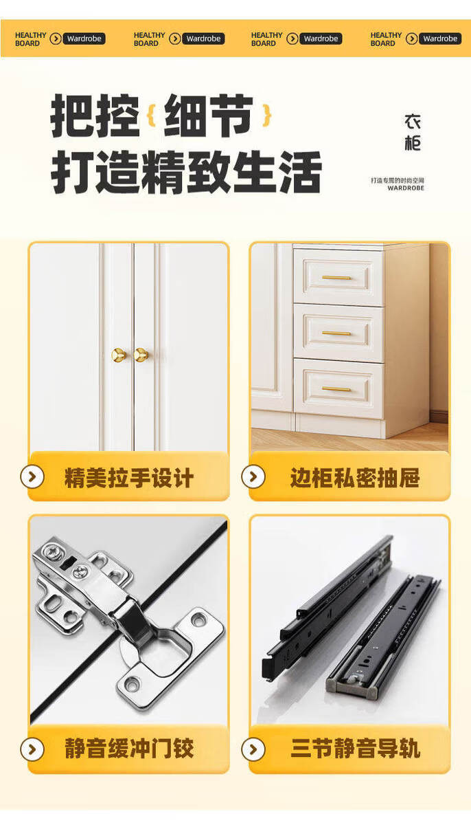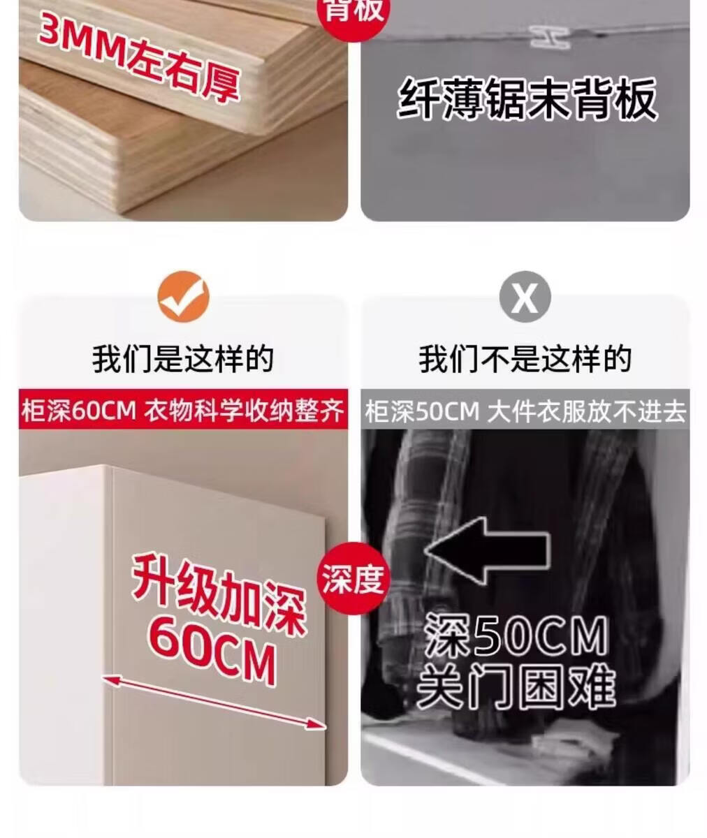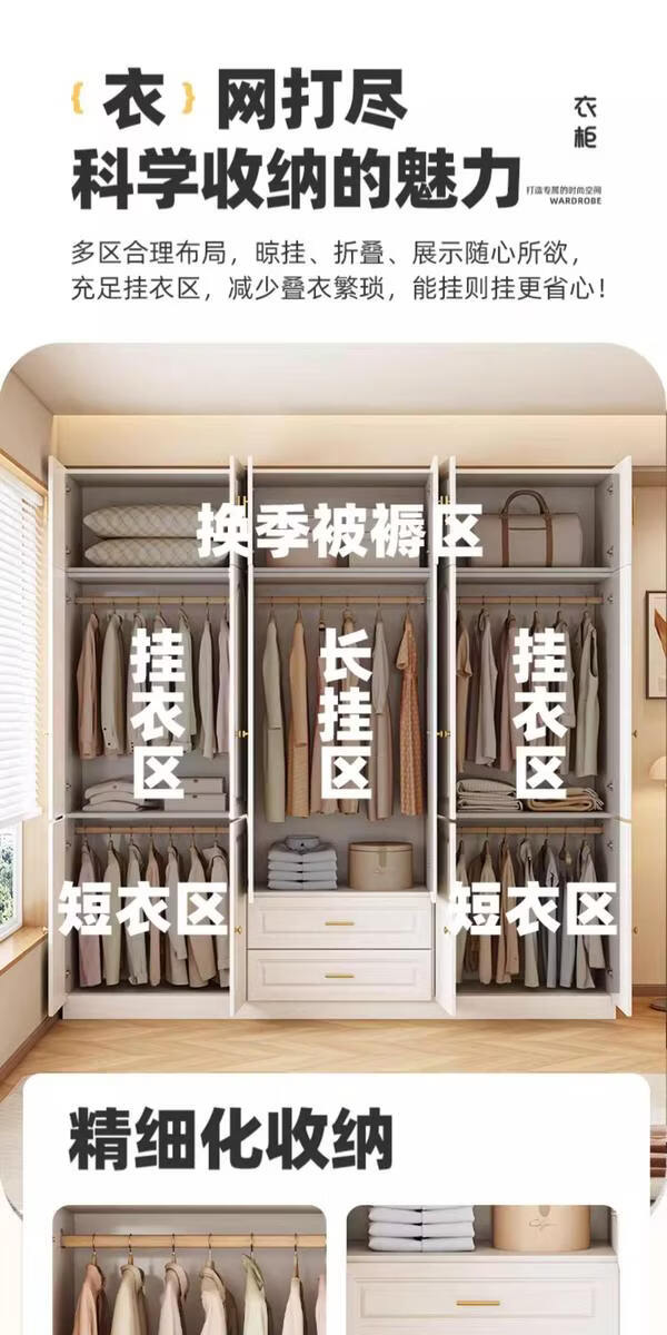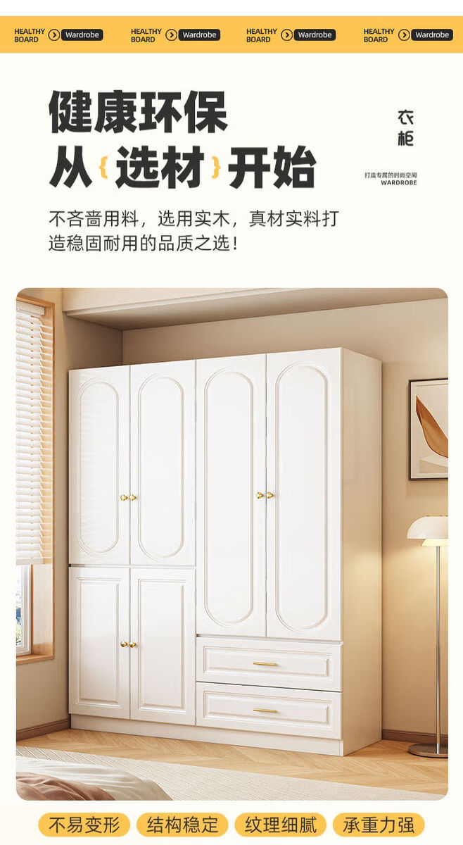 溥畔衣柜卧室家用儿童实木柜子2026新款爆款新型全挂式定制衣橱收纳柜 [6门]长220x深60x高200主柜+顶柜+边柜 包安装