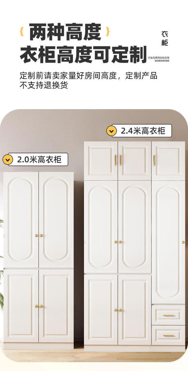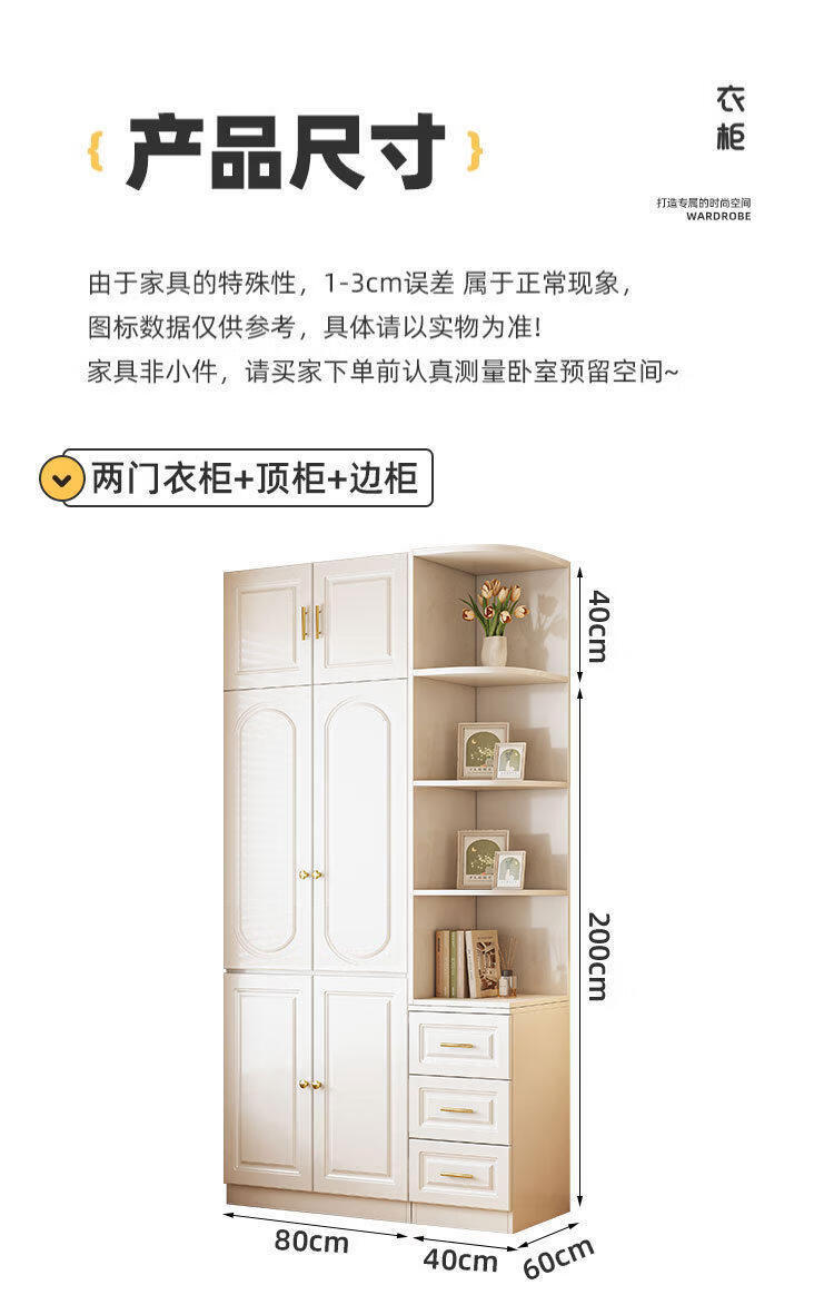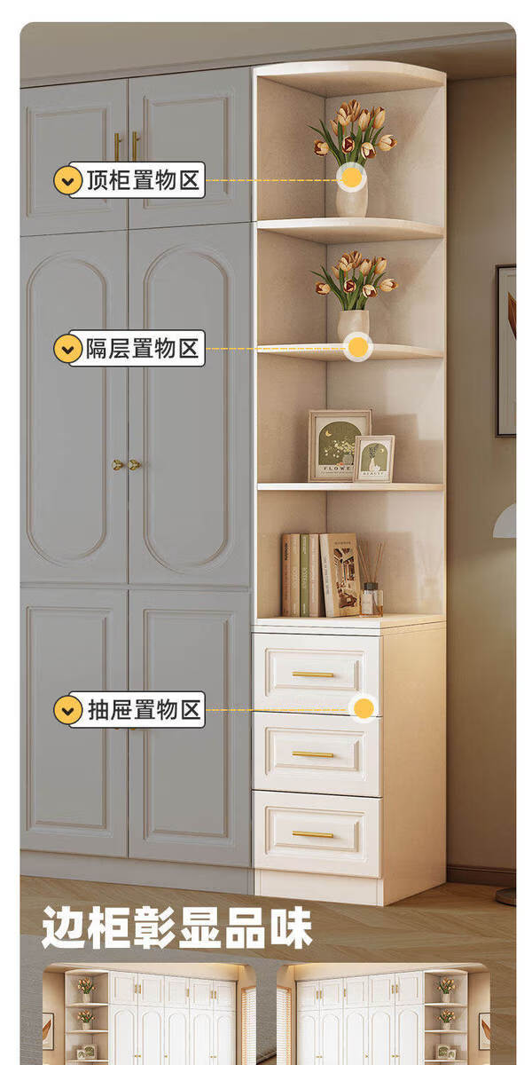 宜美芬 EMAYFUN实木ENF级定制衣柜家用卧室储物奶油风一门到顶平开门简约大衣橱 0.9*0.9配套转角柜【2.4米高】【18MM孕婴ENF级实木】