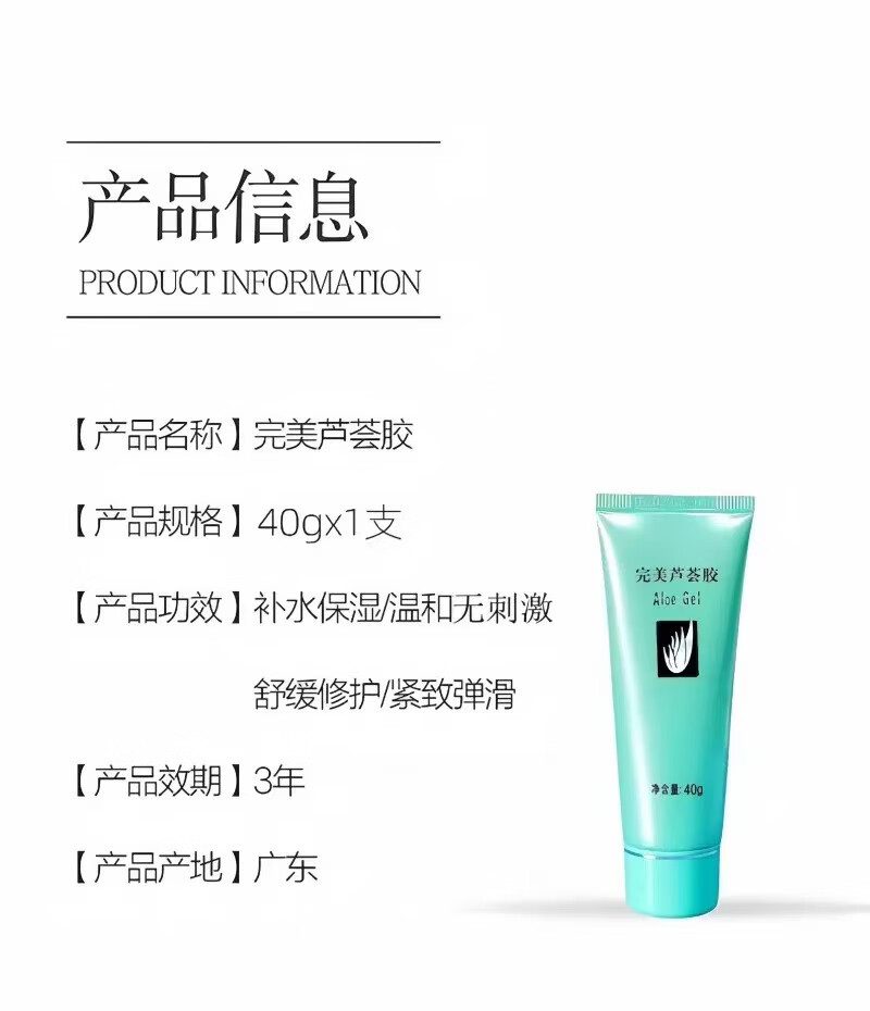 完美芦荟胶正品祛痘修复痘印保湿霜补水滋养晒后修复紧致肌肤凝胶 2支装【共80克】