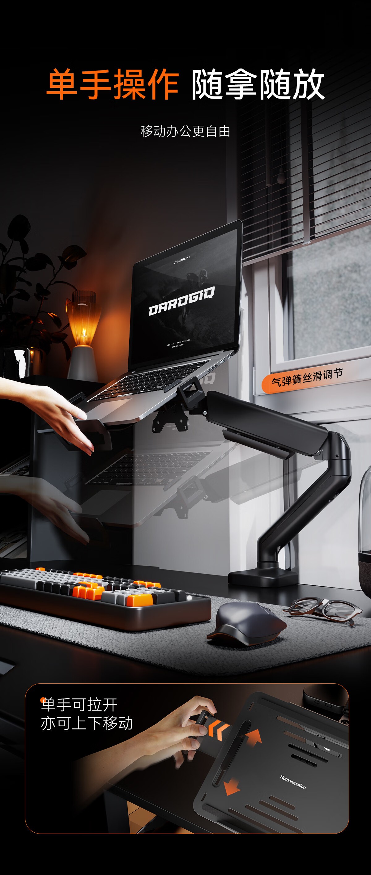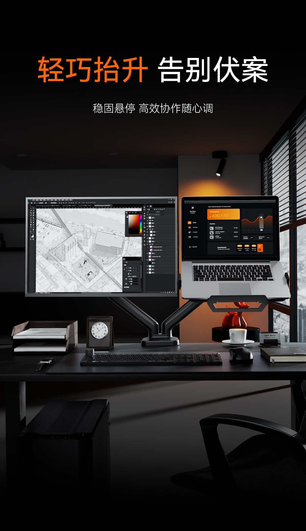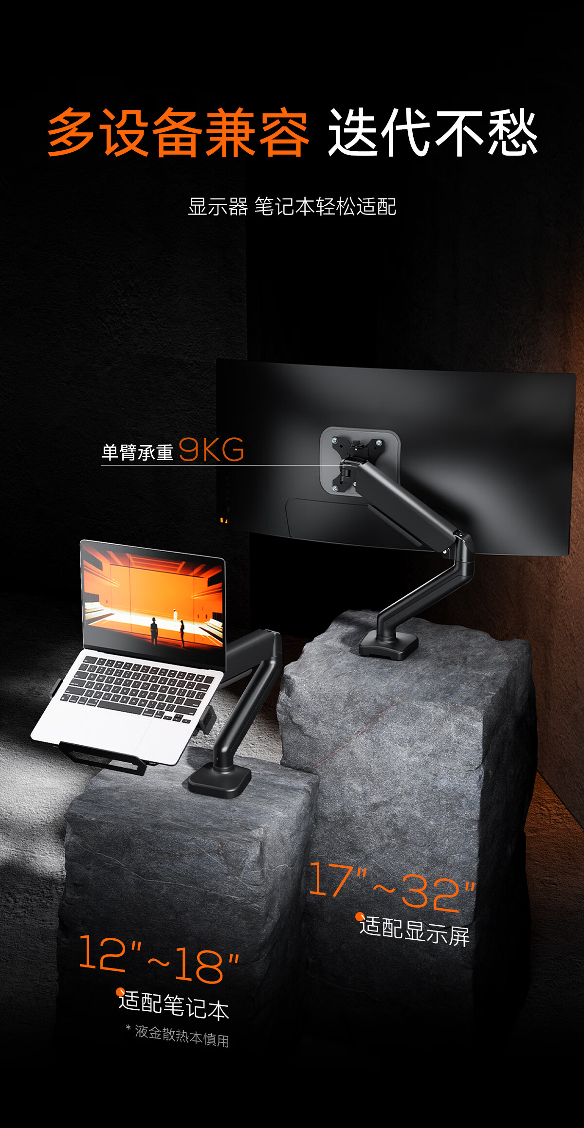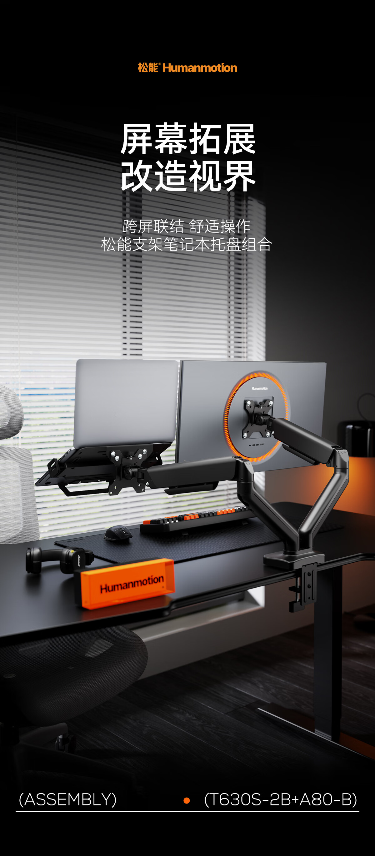 松能笔记本机械臂 双屏显示器支架臂 电脑显示屏幕支架笔记本电脑升降增高架显示器支架一拖二T630S-2B