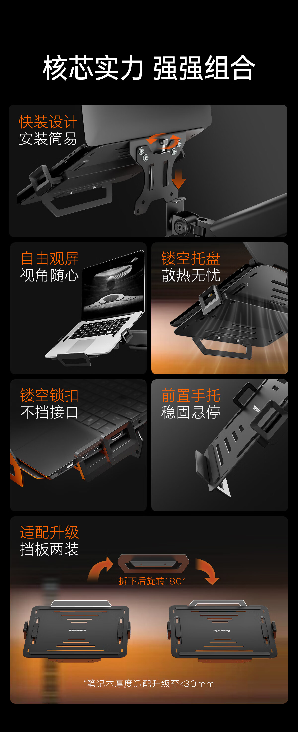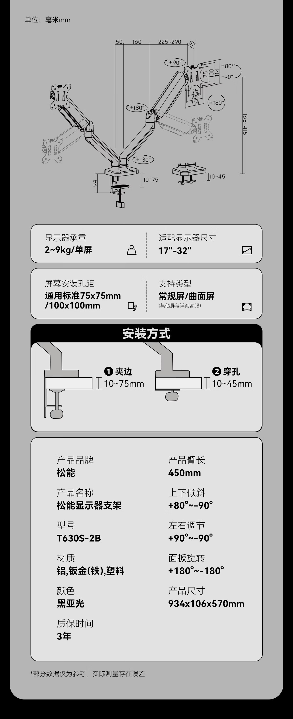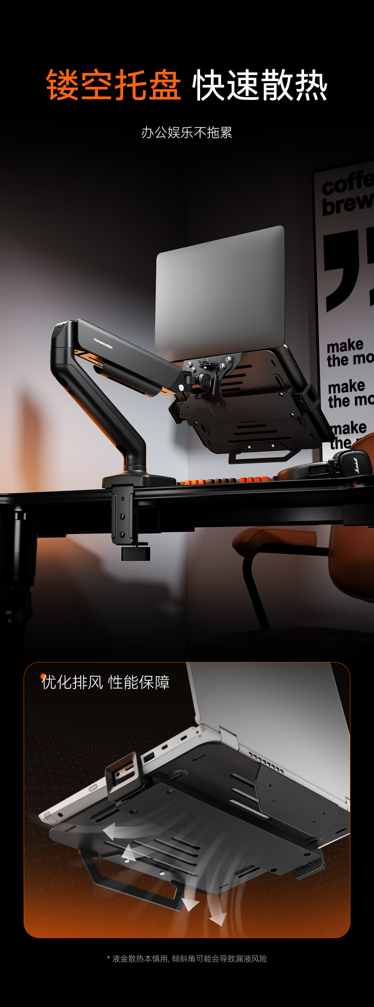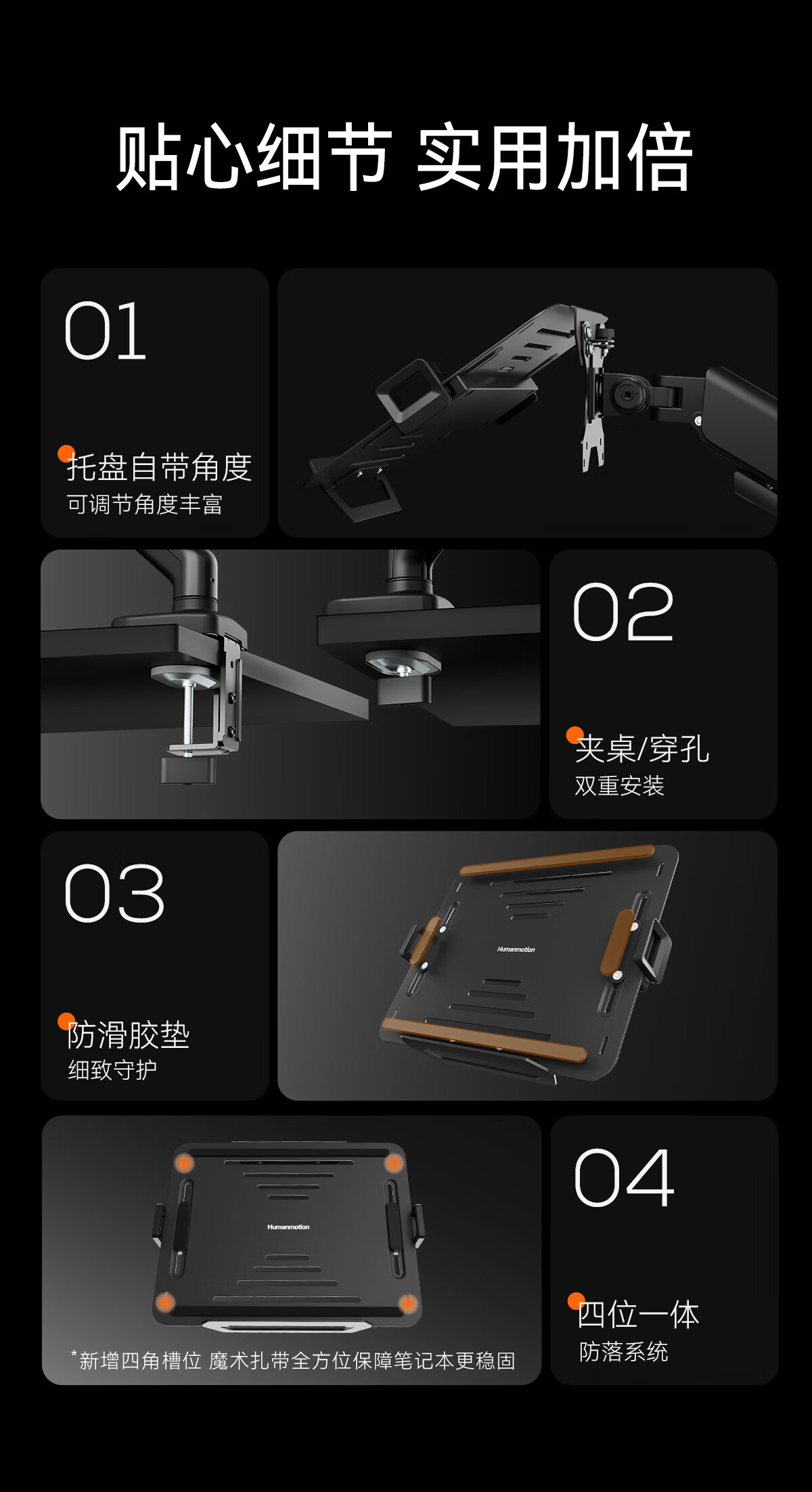 松能笔记本机械臂 双屏显示器支架臂 电脑显示屏幕支架笔记本电脑升降增高架显示器支架一拖二T630S-2B