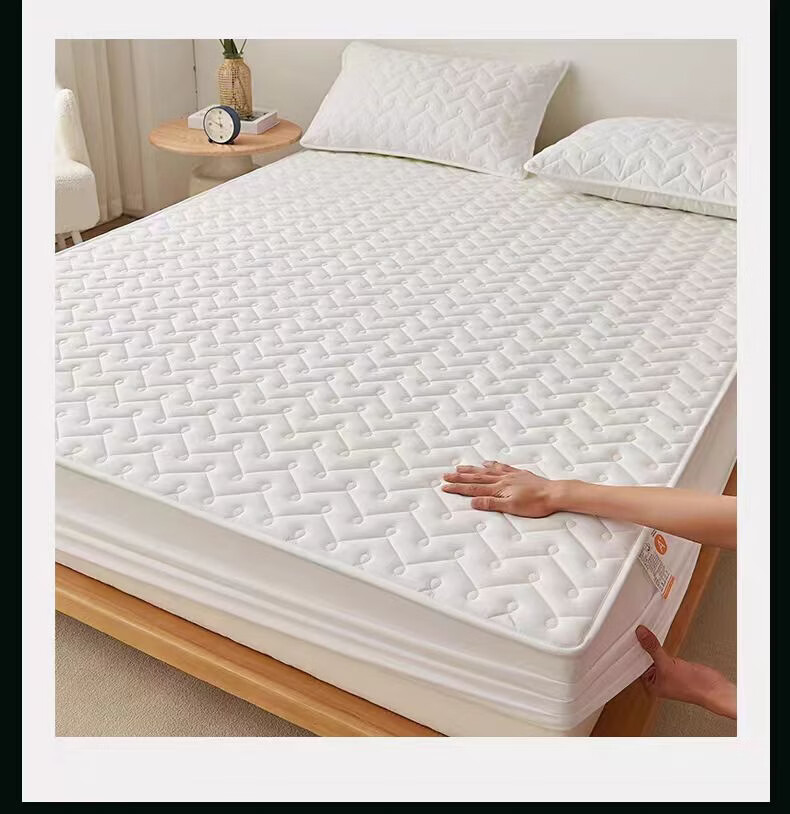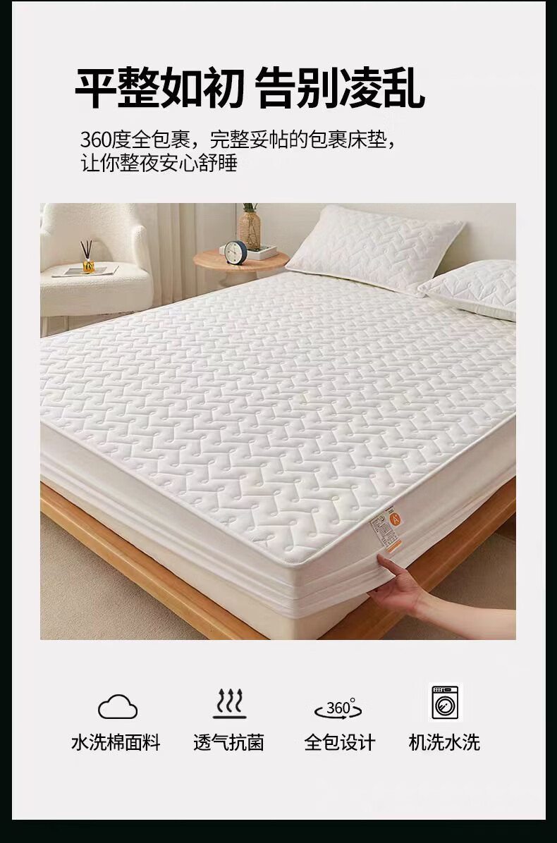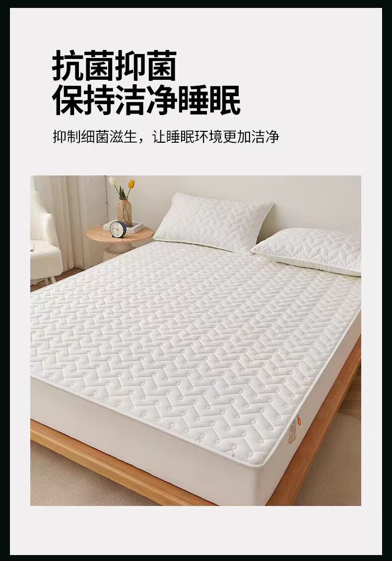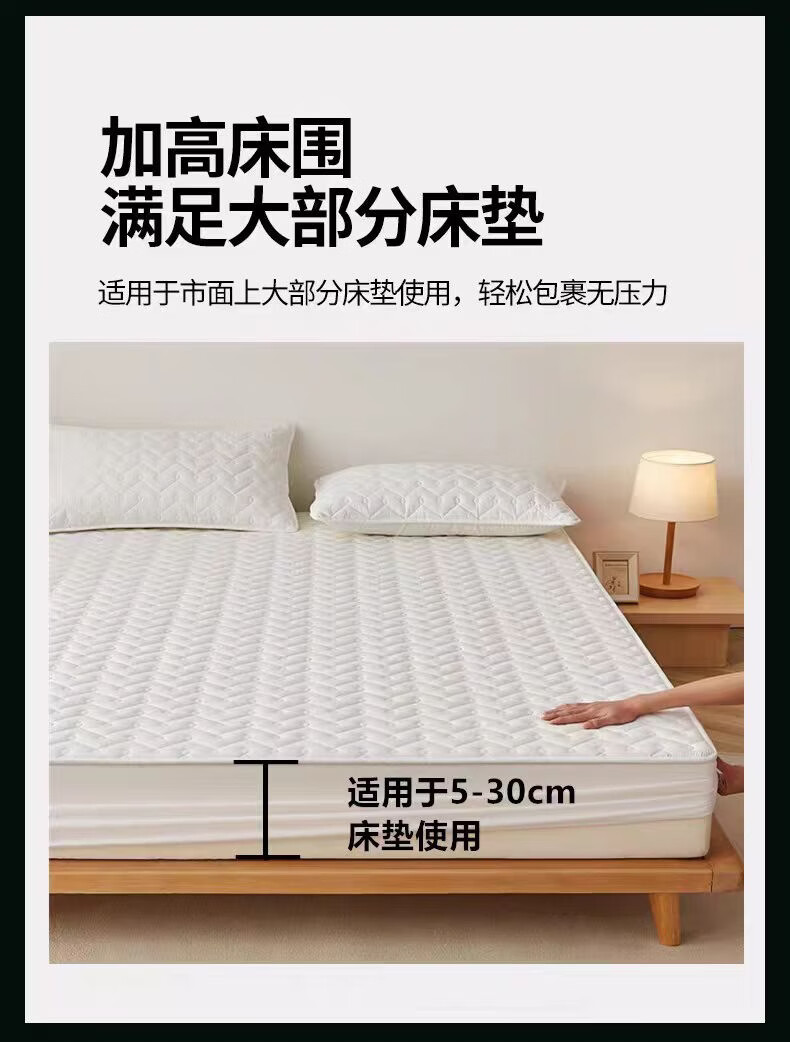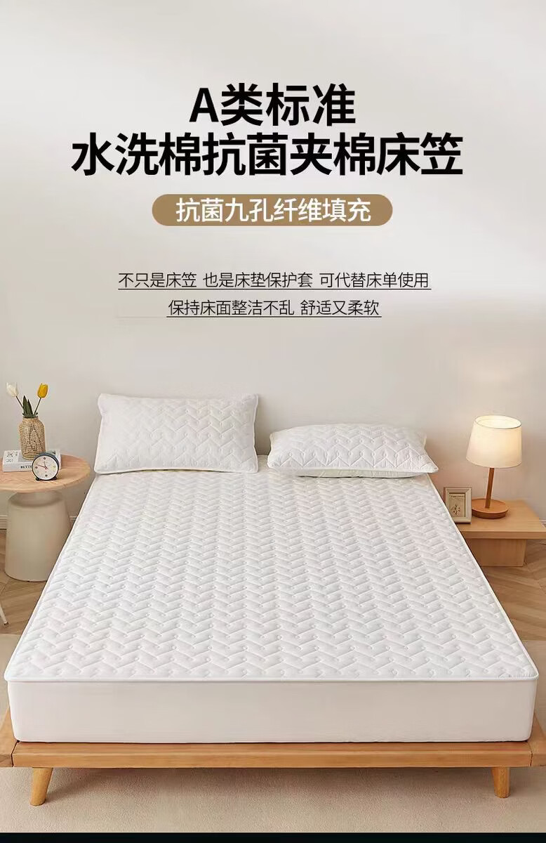 无印良品A类抗菌夹棉床笠1.8米x2米单件加厚床罩床垫保护套全包防滑床单套 波浪纹白色 【A类母婴级 抗菌透气】 180x200cm床笠【适5-28cm床垫】