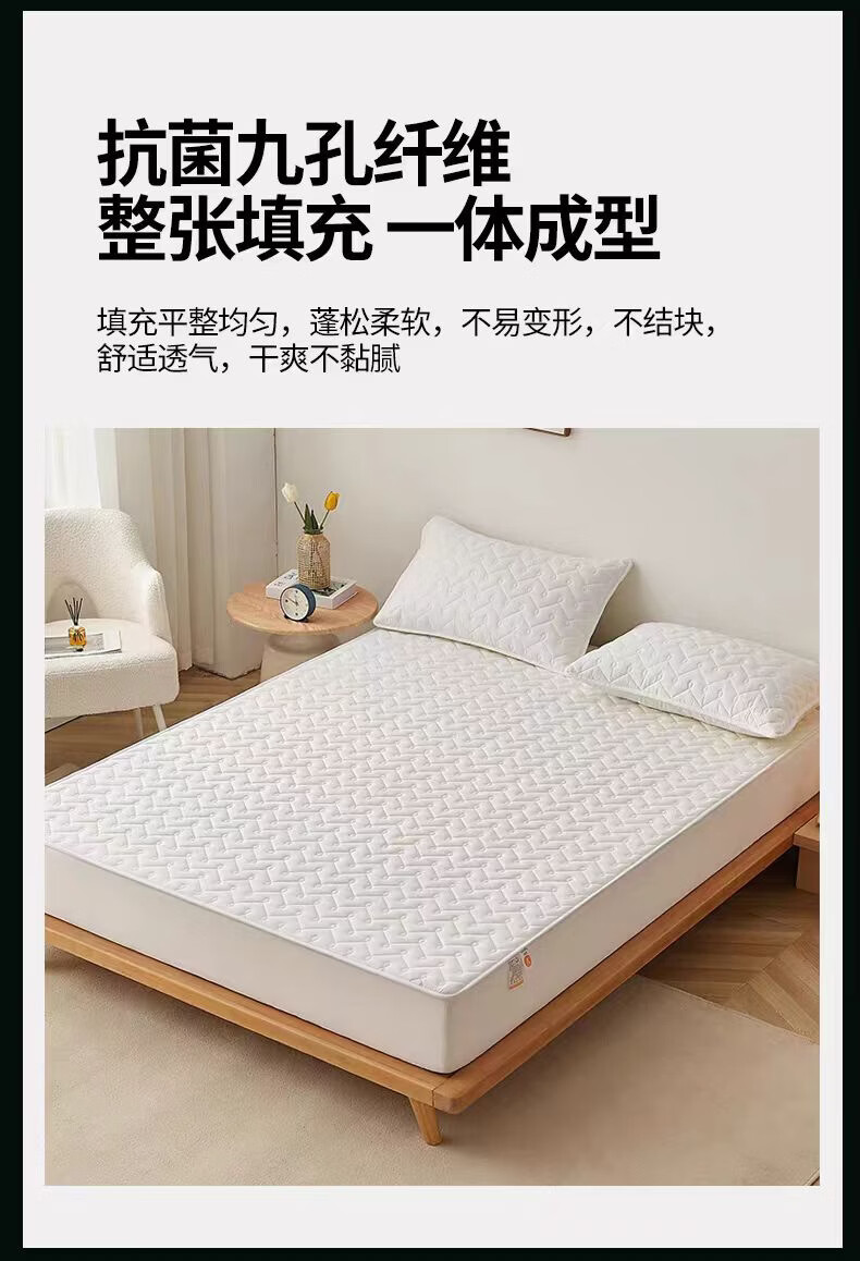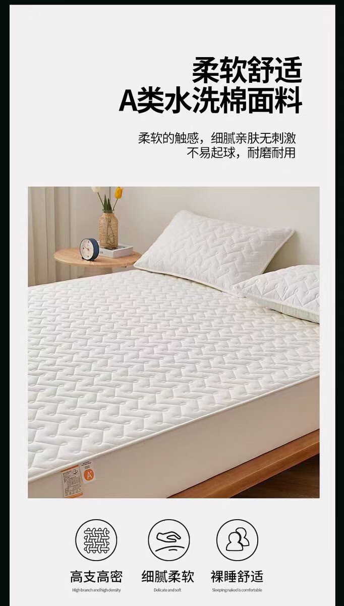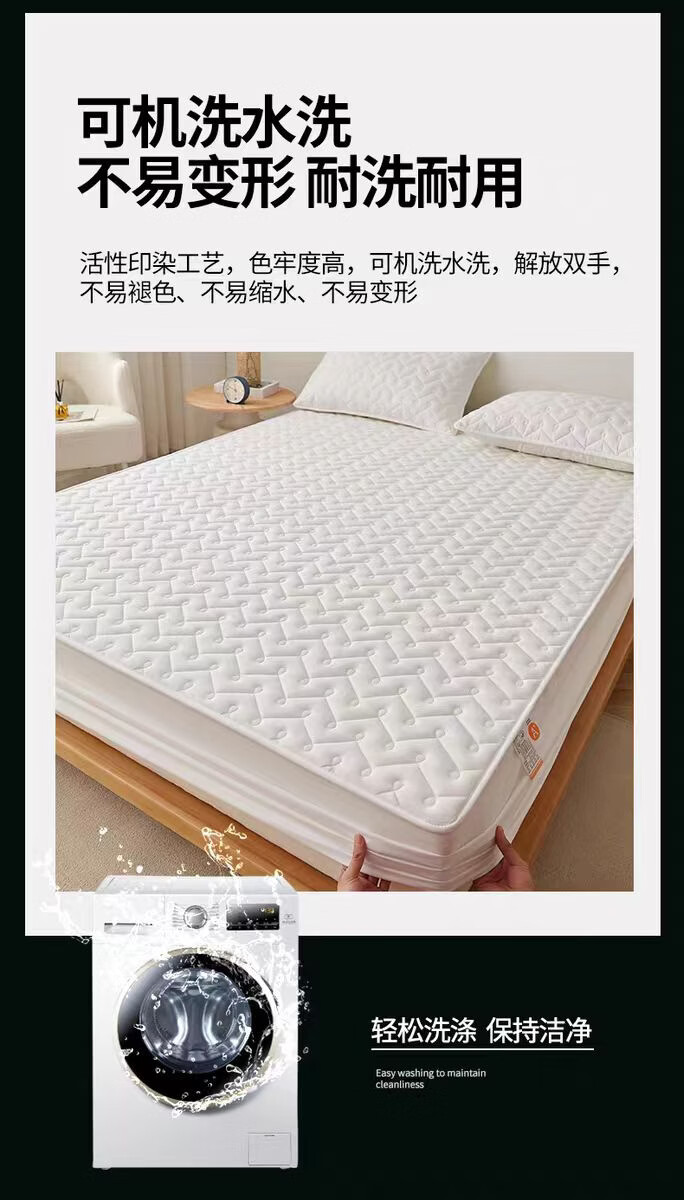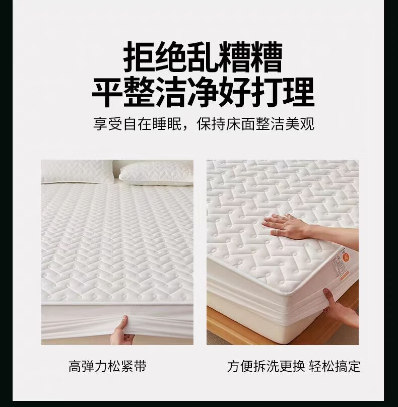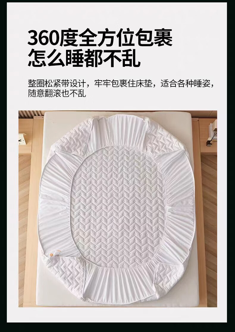 无印良品A类抗菌夹棉床笠1.8米x2米单件加厚床罩床垫保护套全包防滑床单套 波浪纹白色 【A类母婴级 抗菌透气】 180x200cm床笠【适5-28cm床垫】