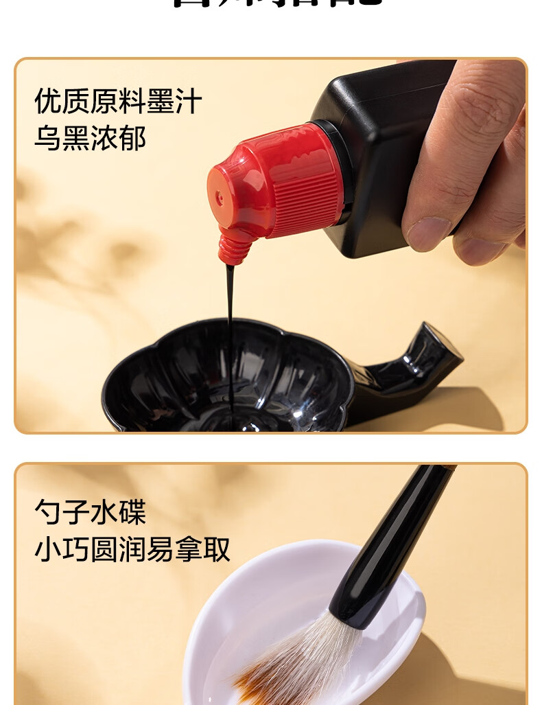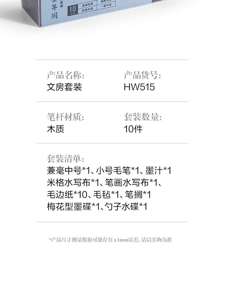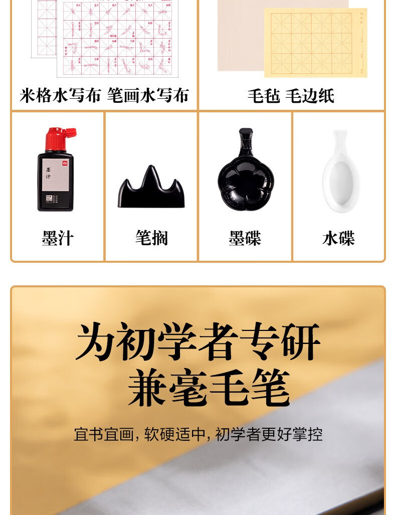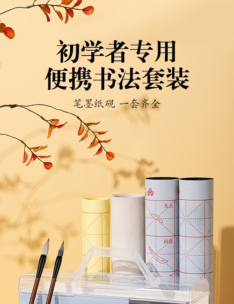 得力(deli)文房用品书法套装 文房四宝毛笔砚台宣纸收纳箱初学者学生入门 文房套装10件套开学用品小学生礼物
