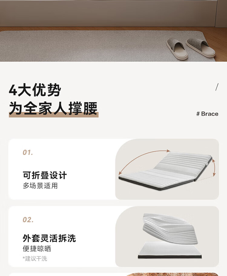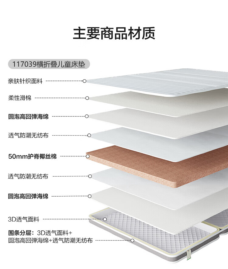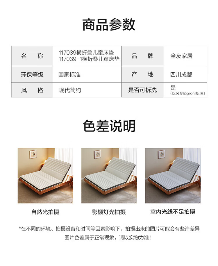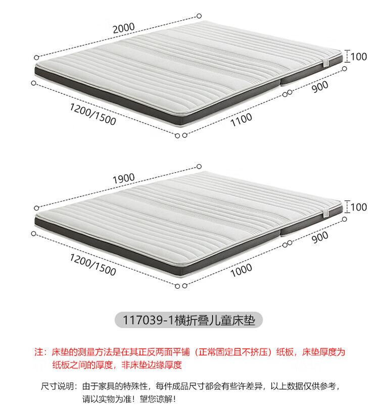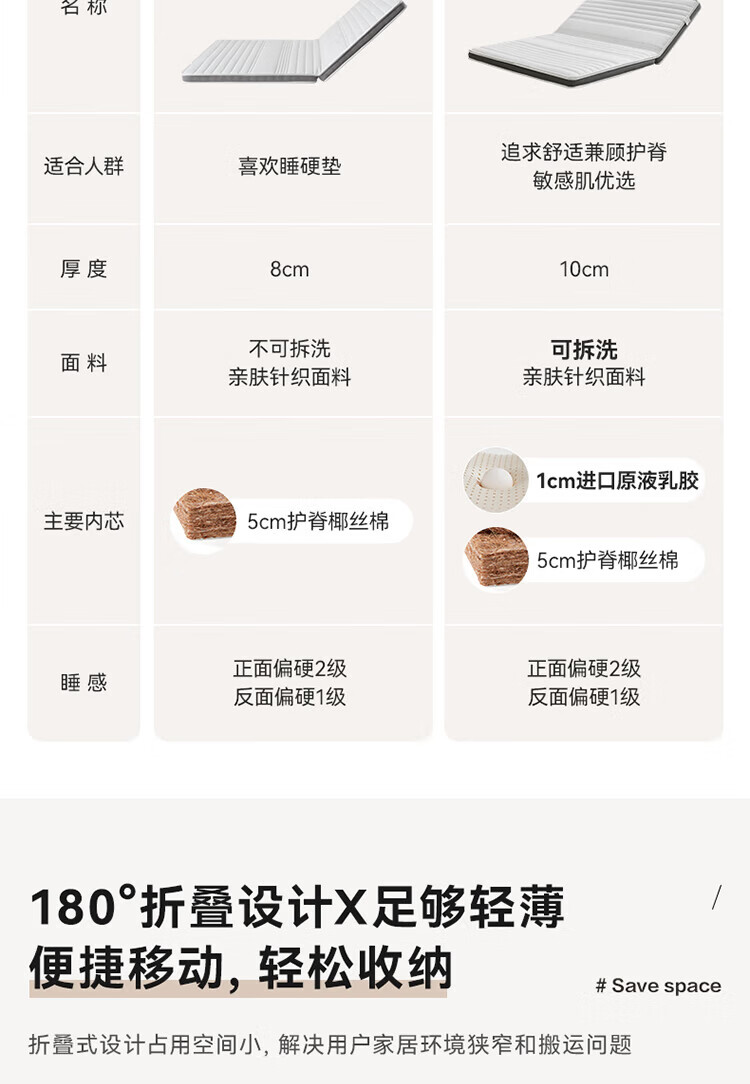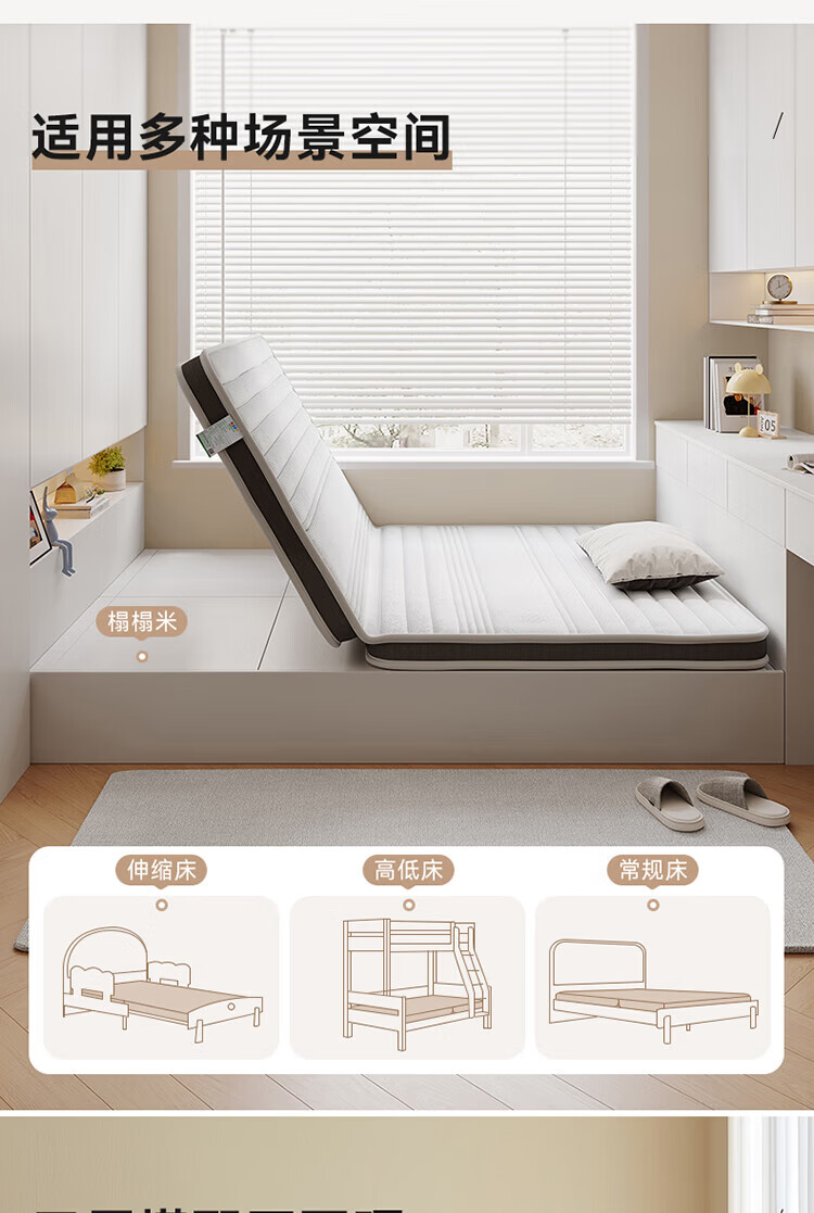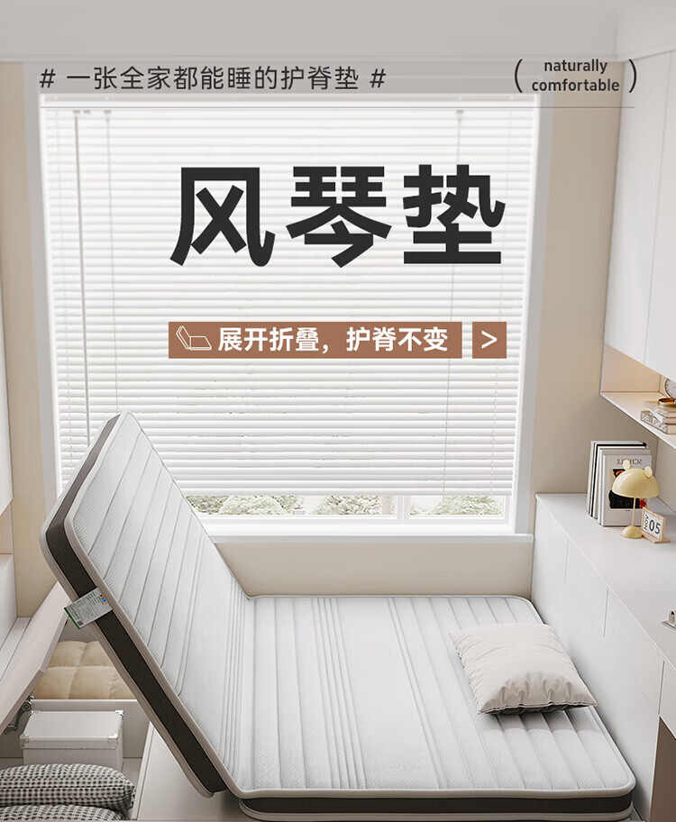 全友家居卧室榻榻米床垫子可折叠天然椰棕护脊床垫薄款儿童床垫家具KS 风琴垫|厚8cm 1x2米【可折叠+0胶椰丝棉】