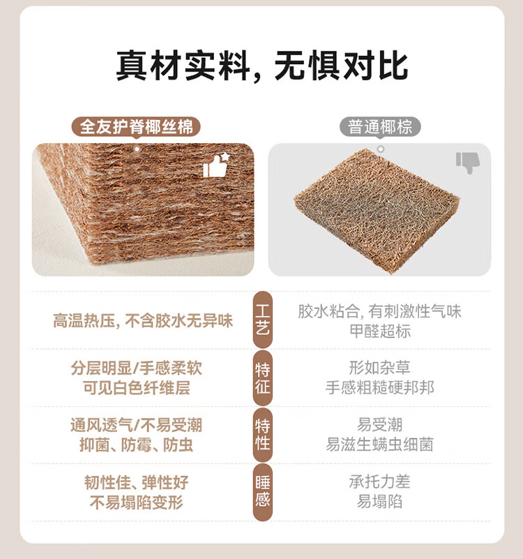 全友家居 独立袋装弹簧乳胶椰棕床垫1.8米x2米席梦思酒店床垫偏硬护脊