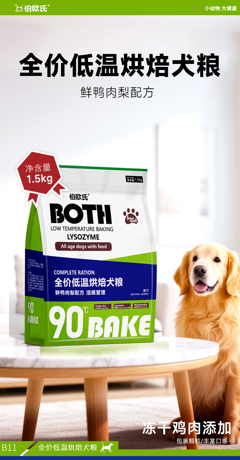 BOTH 狗粮清火 鸭肉梨 中小型犬 比熊泰迪柯基 全期 烘焙狗粮3斤