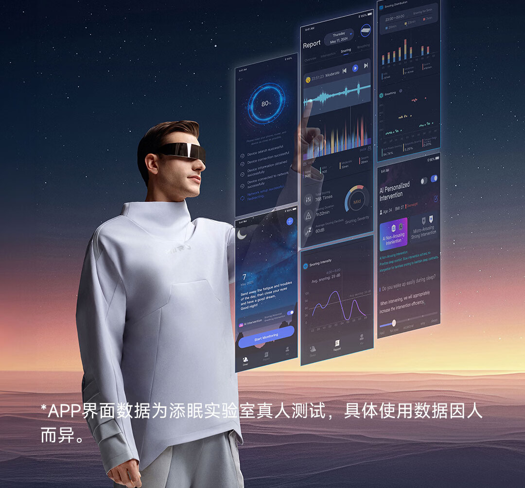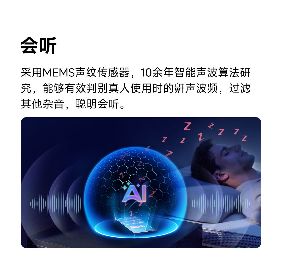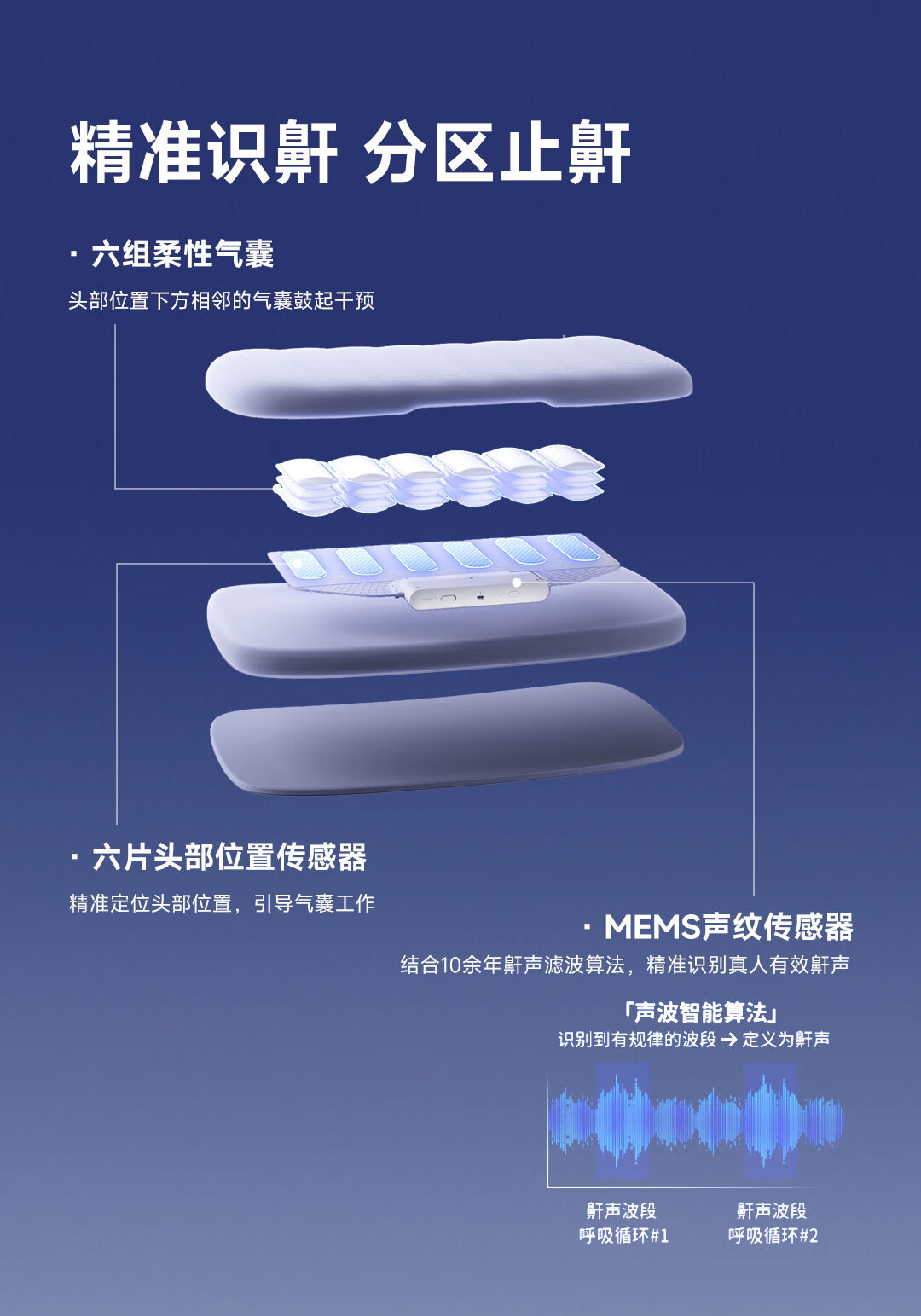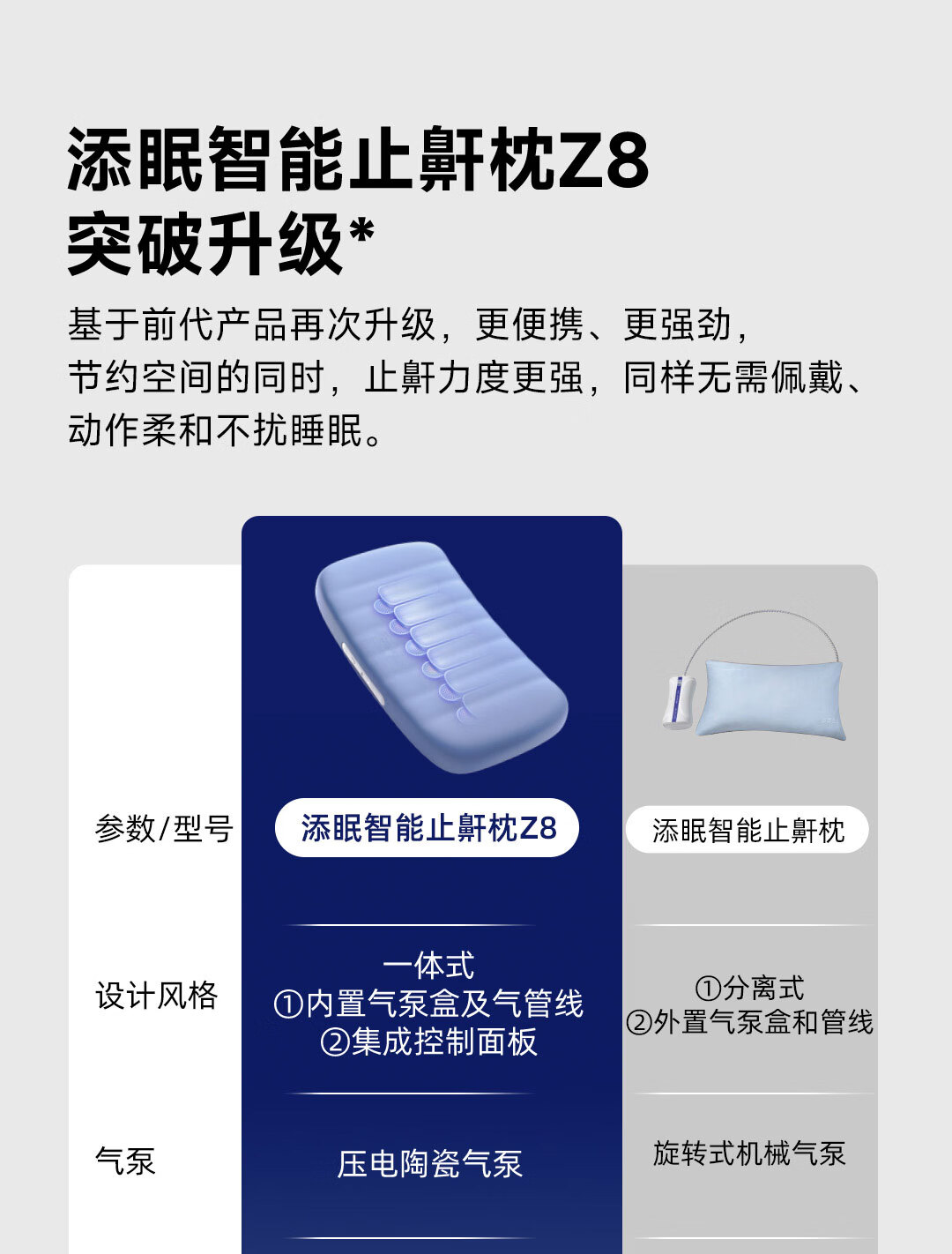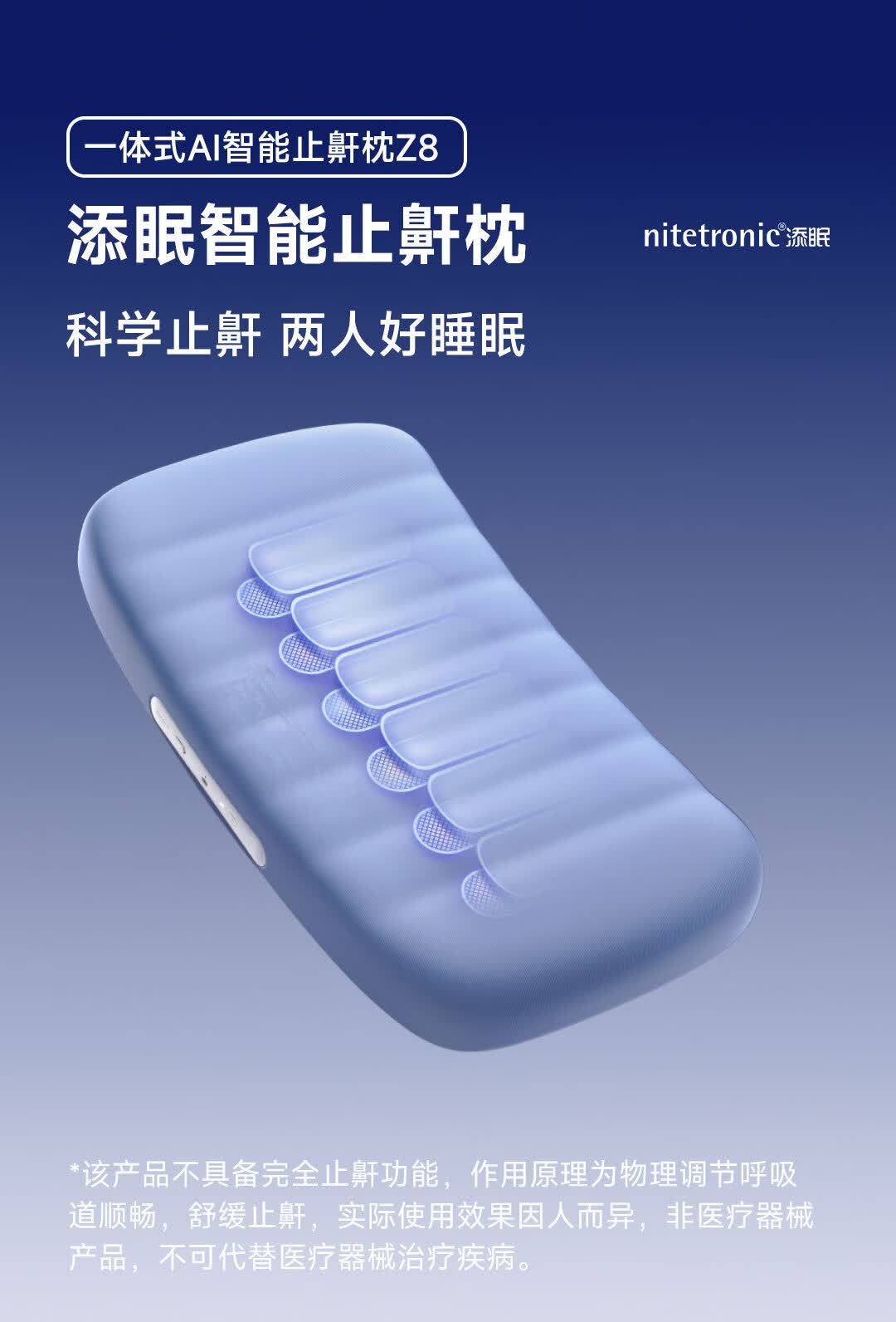 Nitetronic添眠AI一体式止鼾枕Z8 防打呼噜打鼾睡眠监测智能枕健康礼高档 2026年新品(APP下载如有问题请咨询客服) 单只 9.5cm 枕高可降至8cm