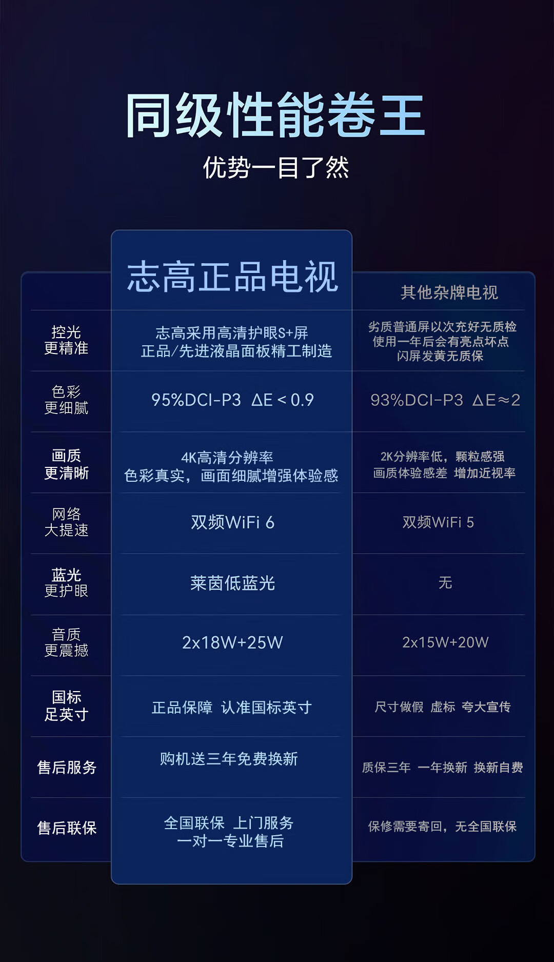志高(CHIGO)电视85英寸100 65 55 75寸新款全面屏无边框液晶大屏幕客厅巨幕高清家用平板智能网络wifi投屏护眼 43英寸 【长98*高57】不虚标 安装版【伸缩挂架】