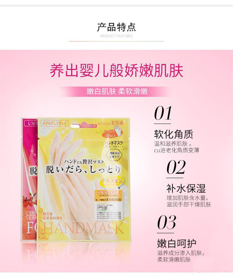 Lucky Trendy日本进口 幸尚去角质死皮老茧防干裂滋润保湿手膜足膜 玫瑰精华滋润保湿手膜 1对/袋