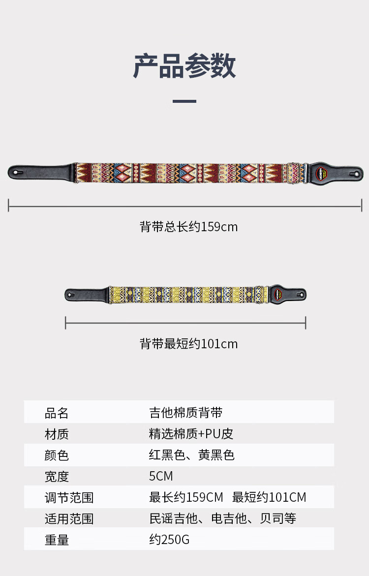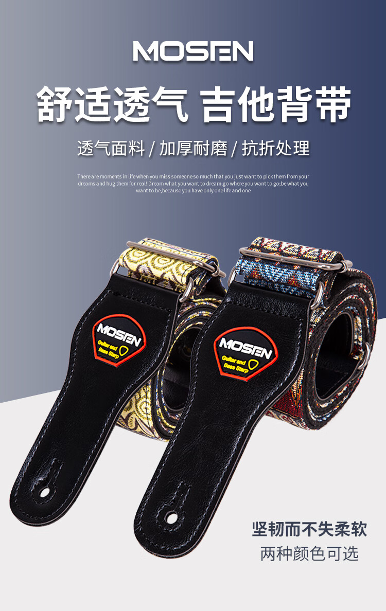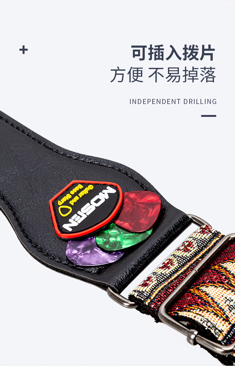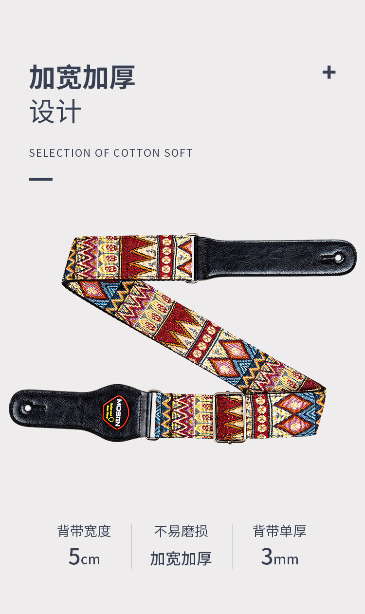 莫森(MOSEN)MBD03皮头加厚编织涤纶民谣吉他背带 电吉他贝司吉它背带 红黑款