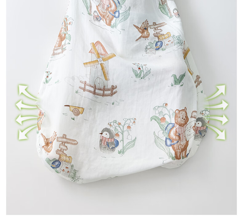 贝肽斯儿童睡袋夏季竹棉纱布宝宝睡衣一体婴儿防踢被睡袋前4后2灵鹿 L