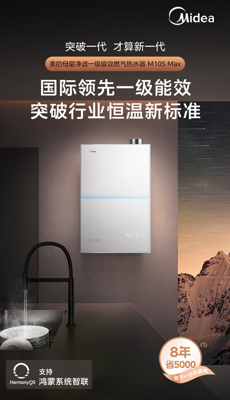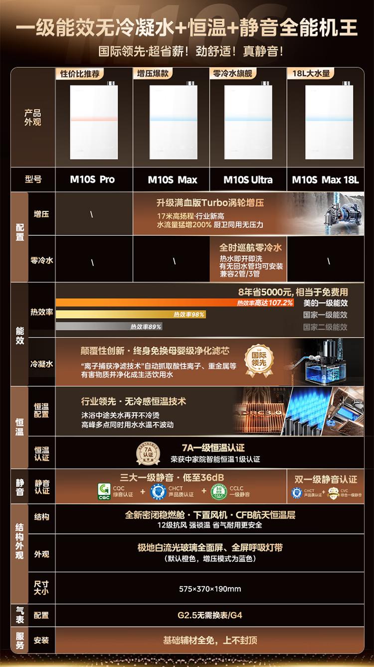 美的【小西梅燃气热水器】一级能效M10SMax系列16升热水器天然气热水器增压无冷感一级恒温 16L 超静音M10S Max-Turbo双增压