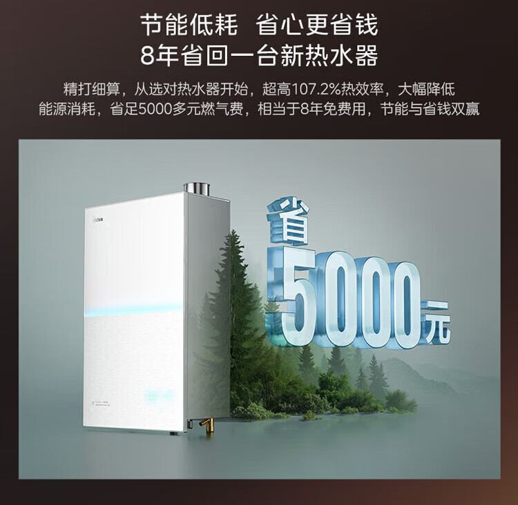 美的(Midea)燃气热水器 ADRC2.0自适应恒温节能 升级大屏按键 5重净滤呵护敏感肌 13L 节能恒温 H2